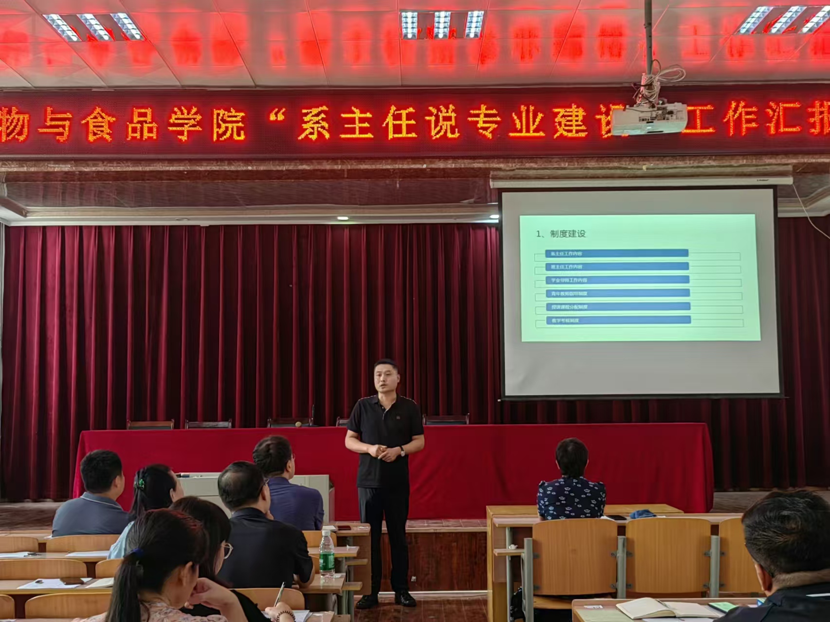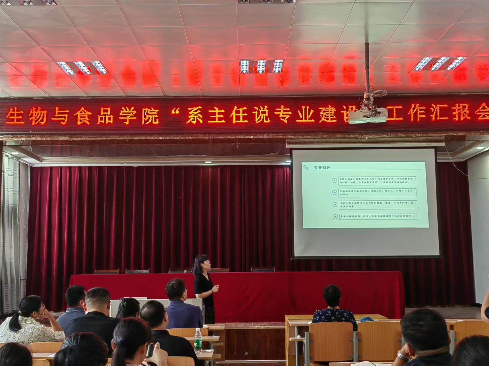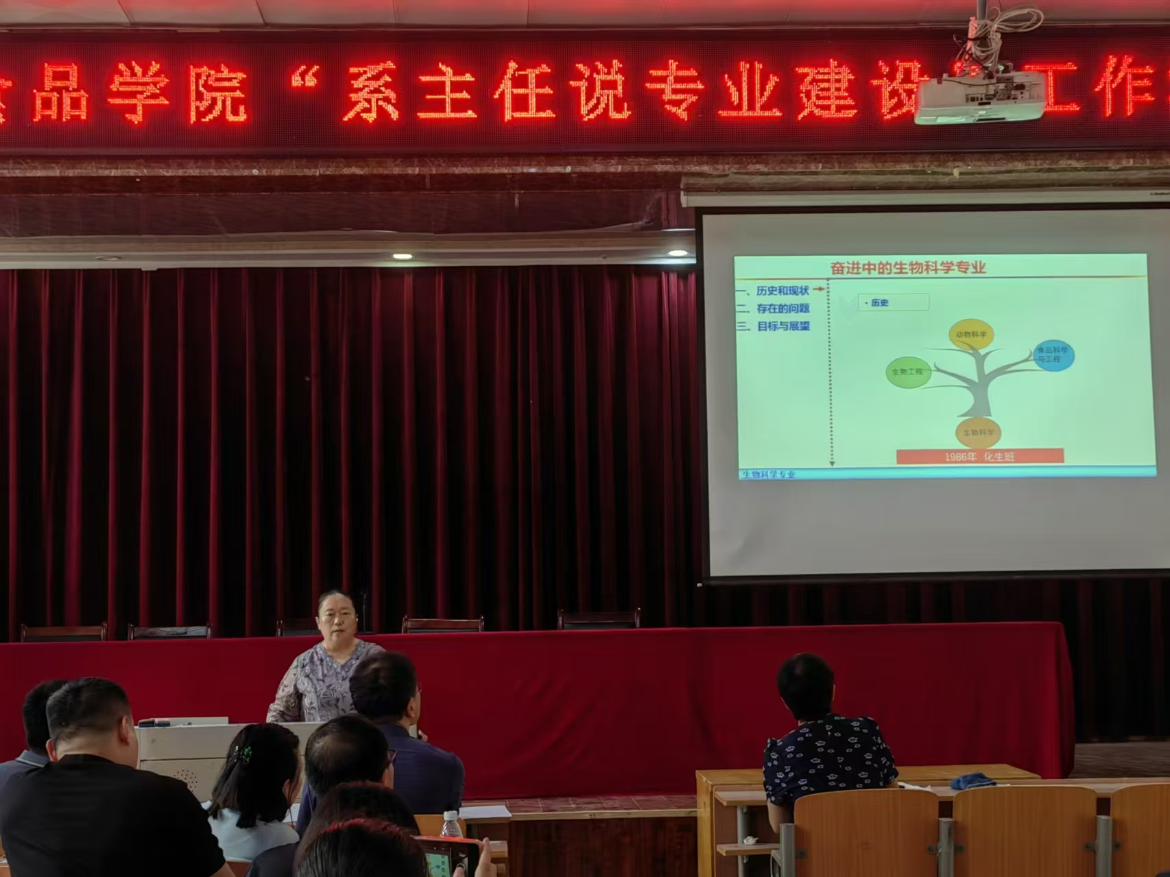 汇报会上,生物科学专业系主任郑爱珍、生物工程专业系主任邓丹丹、动物科学专业系主任施传信、食品科学与工程专业系主任宋旸,四位系主任分别从专业发展回顾、当前专业发展存在的主要问题、专业发展的目标、专业发展的主要任务、专业发展规划实施条件与保障等多个方面进行了汇报,尤其针对专业发展的主要任务进行了细致的分解及说明,详细论述了专业建设规划的具体任务落实及实施途径。