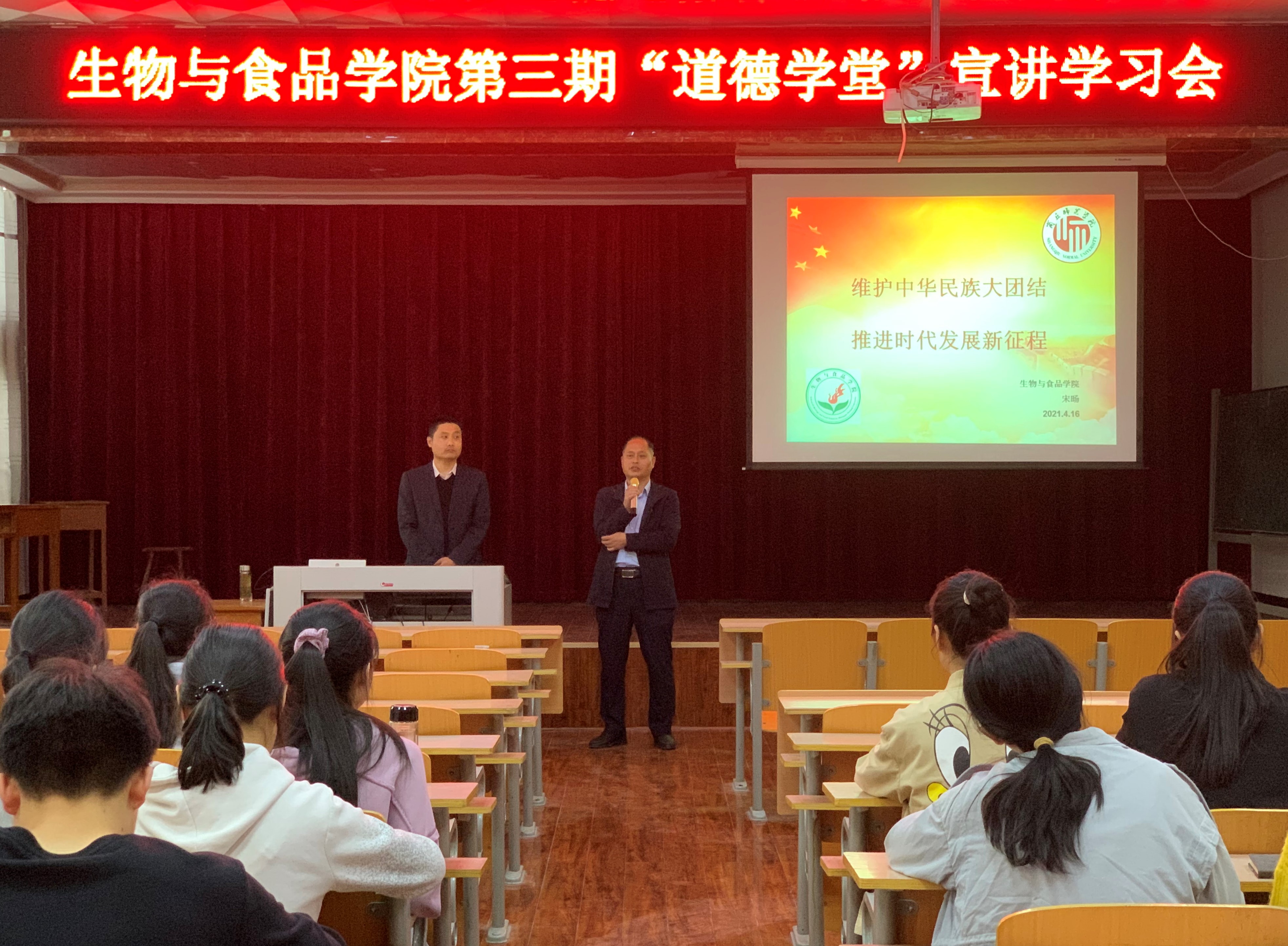 为引导员工更全面地认知当代青年的使命担当,增强员工的使命感与责任感,展现青春力量,2021年4月16日下午,英国上市365在院报告厅组织开展“道德学堂”宣讲学习会。本次学习会由党总支副书记史继红主持,宋旸老师主讲。19级、20级动物科学和食品科学与工程专业全体员工参与此次“道德讲堂”宣讲学习会。
