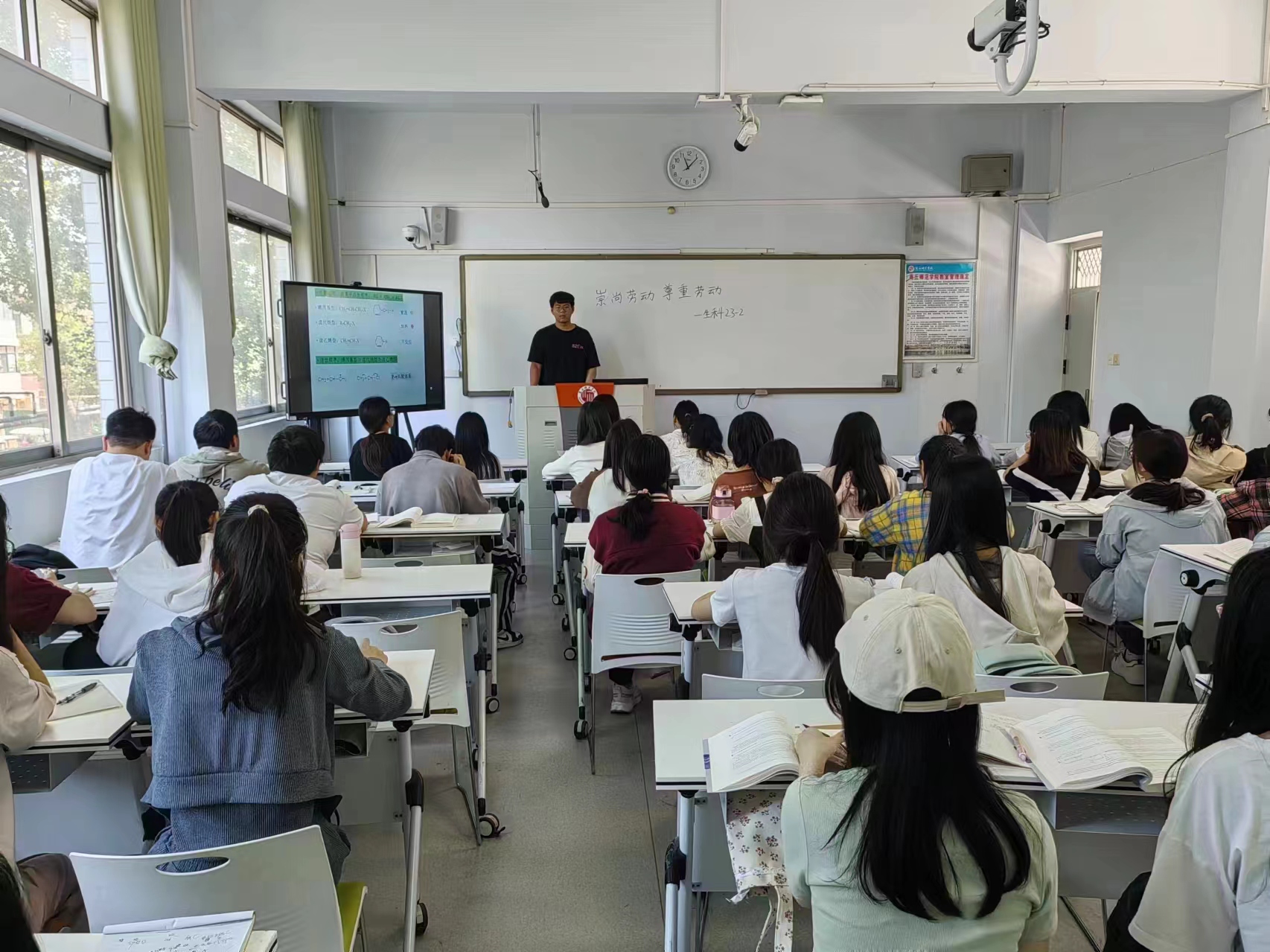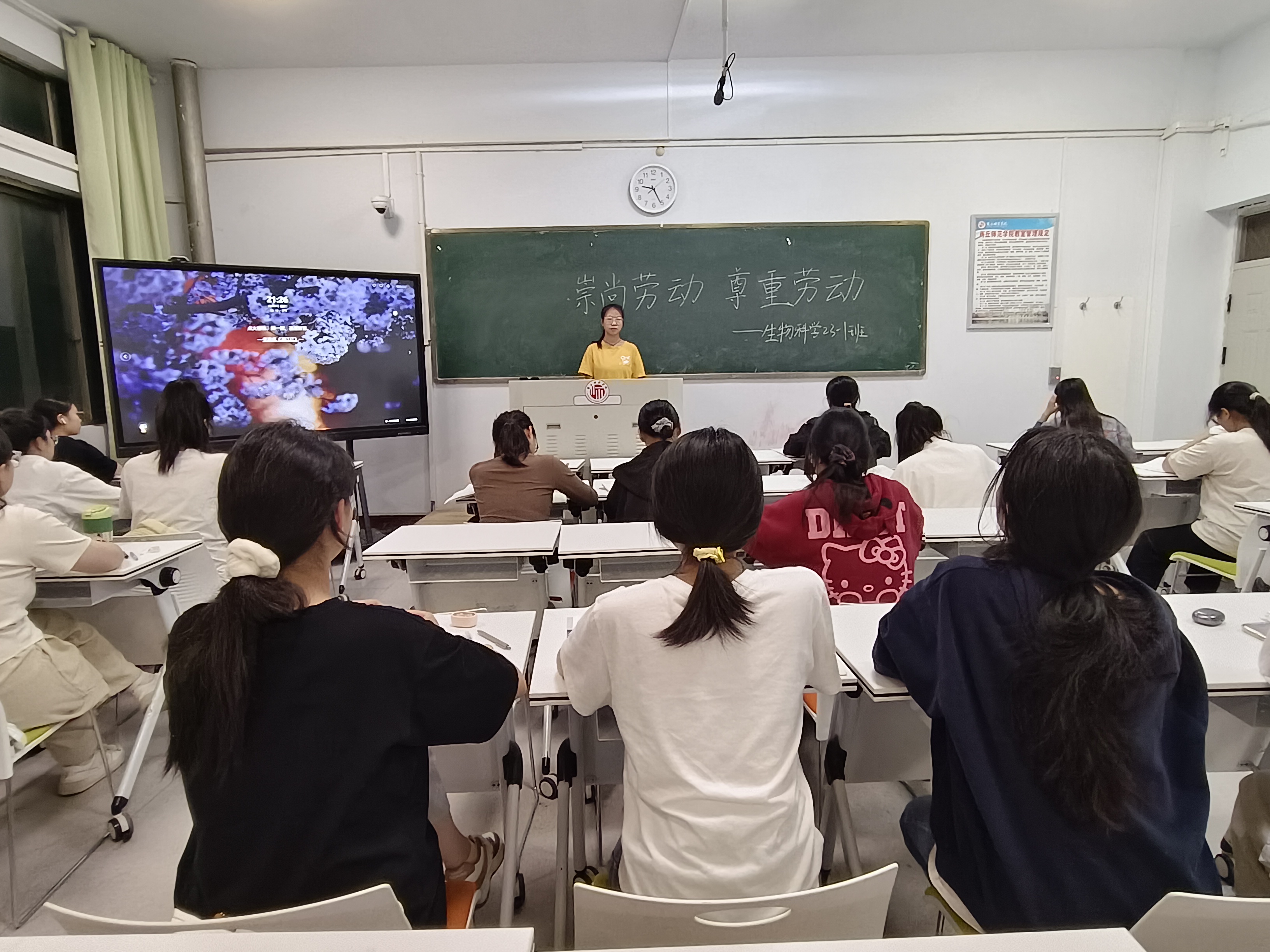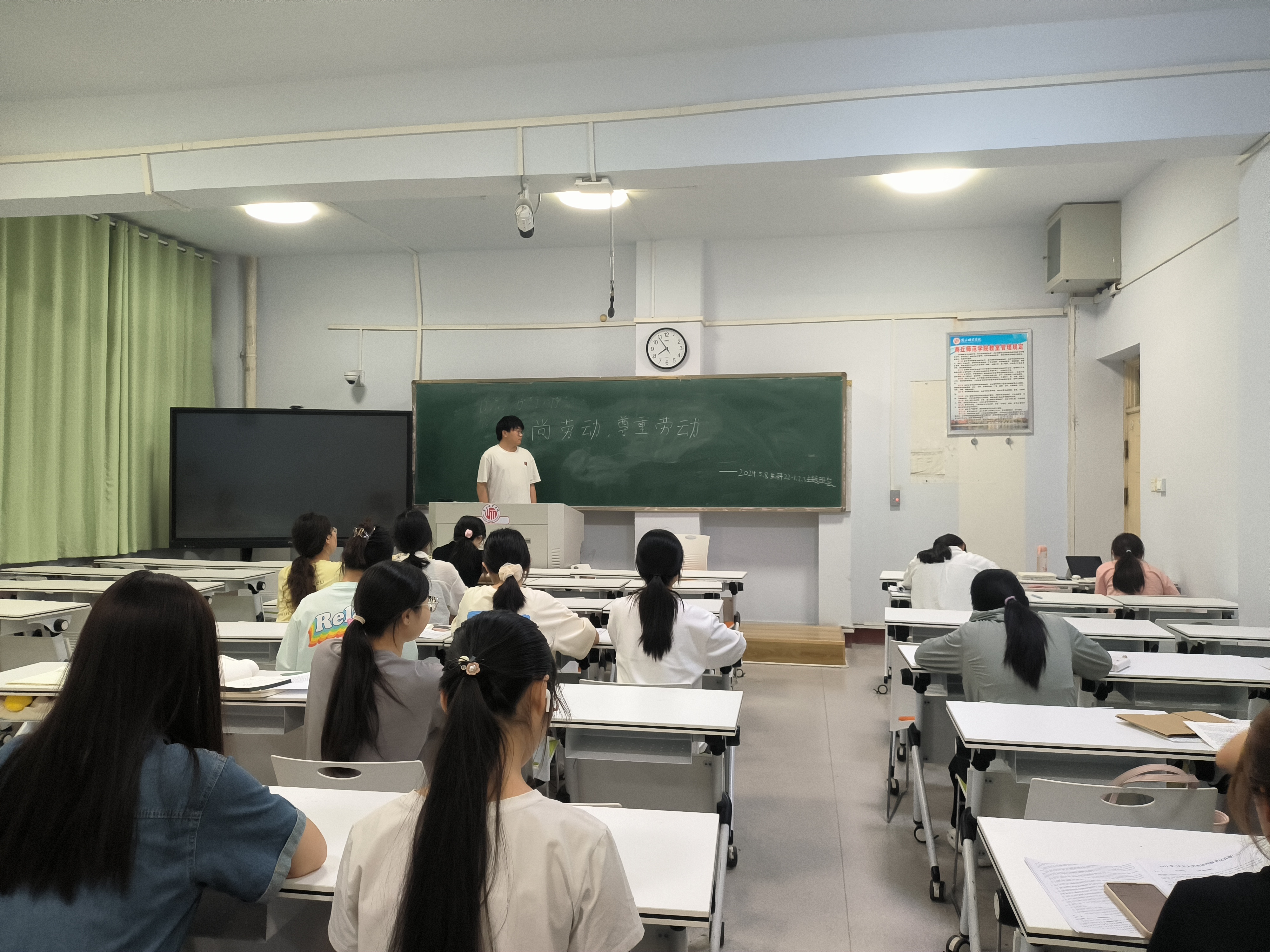 为了引导员工了解劳动教育的重要性,形成良好的劳动观念,增强员工的劳动意识,提高员工的劳动技能,英国上市365各班于一号教学楼开展了“崇尚劳动,尊重劳动”主题班会。