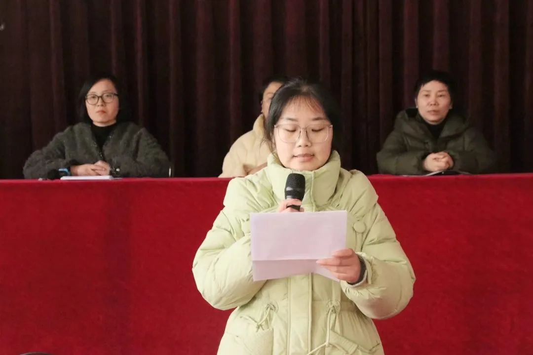 员工代表甄盈盈宣读安全文明卫生月倡议书:主要从增强安全意识、倡导文明行为、注重卫生习惯、积极参与活动四个方面发出倡议。