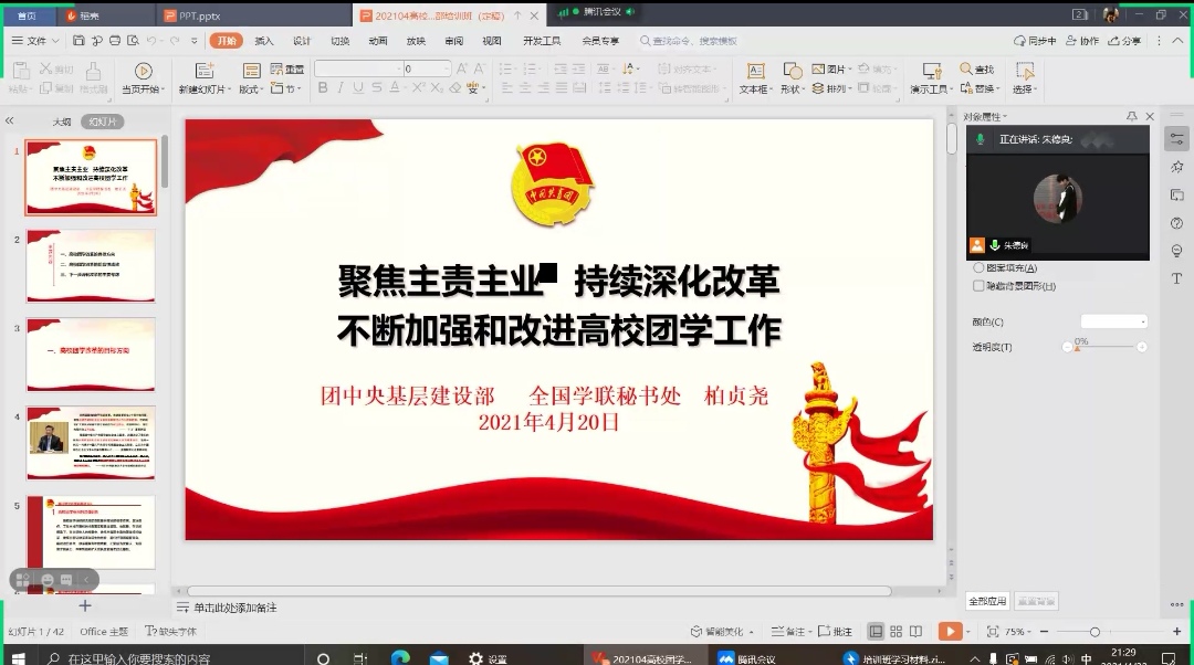 首先,朱德良带领大家回顾了新文化运动、五四运动、马克思主义的传播与共产党的诞生以及中国革命的新局面等中国开天辟地的大事件,其中朱德良着重介绍了每件大事件于中国向前发展起到的重要作用。随后,朱德良对近期的工作进行了全面的总结,并向团总支员工会成员传达了持续深化改革,加强和改进团总支员工会制度的理念。最后,朱德良指出在此建党一百年之际,即将到来的五四青年节显得尤为重要,希望团总支员工会全体成员能汲取永垂不朽的五四精神,牢记每时每刻都为同学服务的宗旨,对各自部室的工作要更加认真负责。