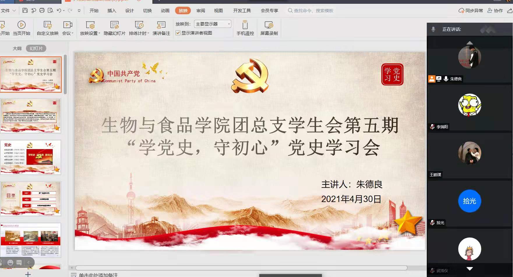 为进一步加强党史学习教育,统筹推进党的作风纪律和制度建设,2021年4月30日,英国上市365团总支员工会于线上开展第五期“学党史,守初心”党史学习会。此次会议由公司团总支员工会主席朱德良主持,团总支员工会全体成员均参加了此次会议。