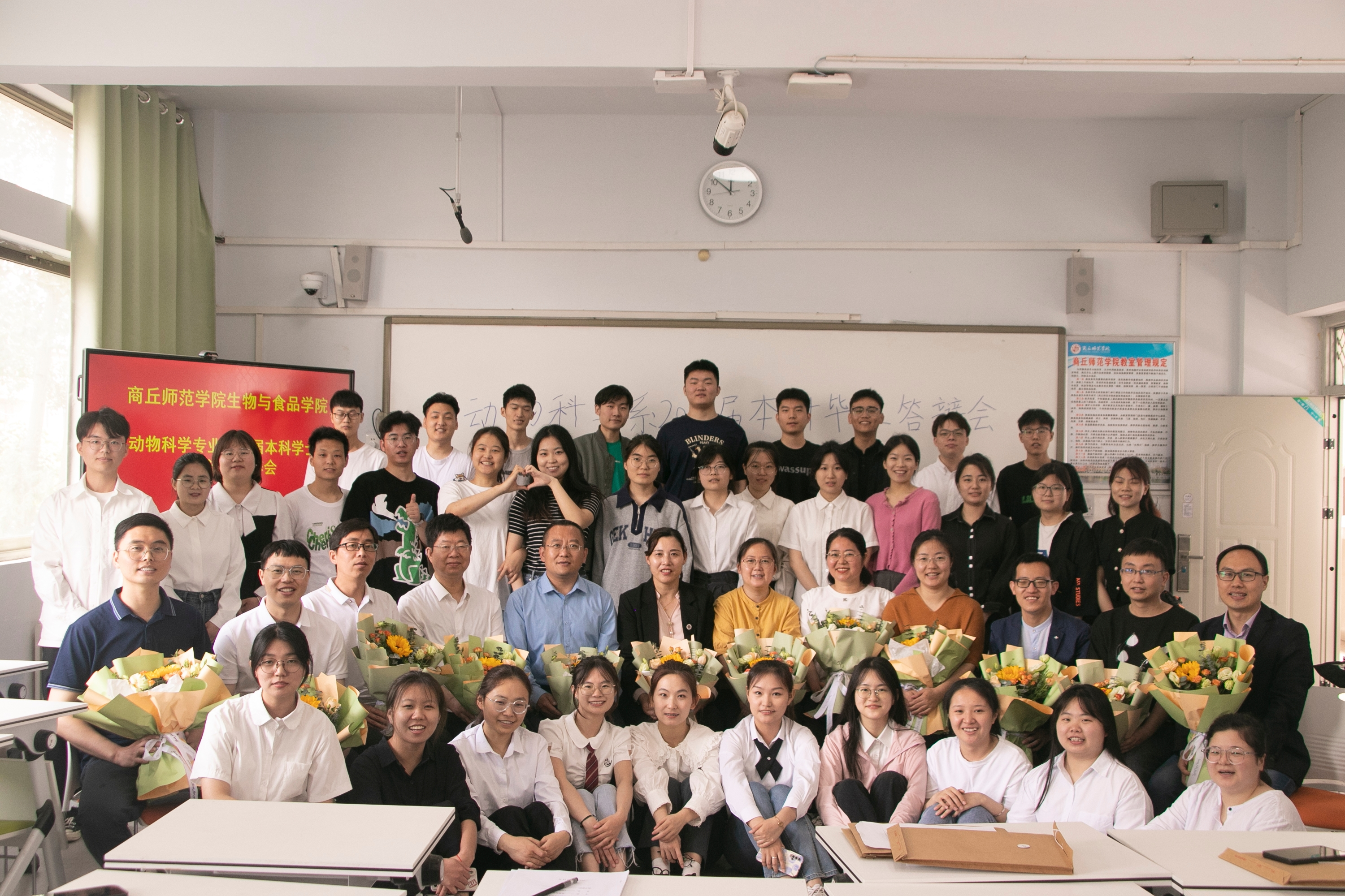 5月21日上午,动物科学系本科毕业生答辩工作在睢阳校区1号教学楼2楼举行。2019级32名员工参加答辩,2020级和2021级全体员工现场观摩学习。答辩共设四个小组,分别由韩进诚教授、杨广礼教授、郭艳教授和施传信副教授担任各答辩组组长,动科系其余老师作为答辩组成员参与评审。