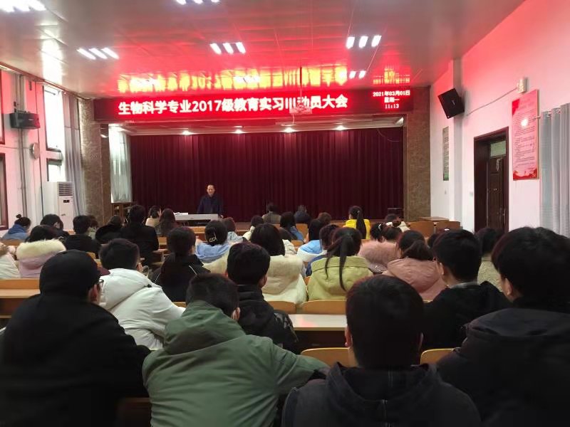 3月1日,开学的第一天,在院报告厅,英国上市365举办了生物科学专业2017级教育实习III动员大会。到会的有生物科学专业2017级全体员工及刘福林、康洁、王玉玲、张峰等校内指导教师,会议由系主任郑爱珍主持。