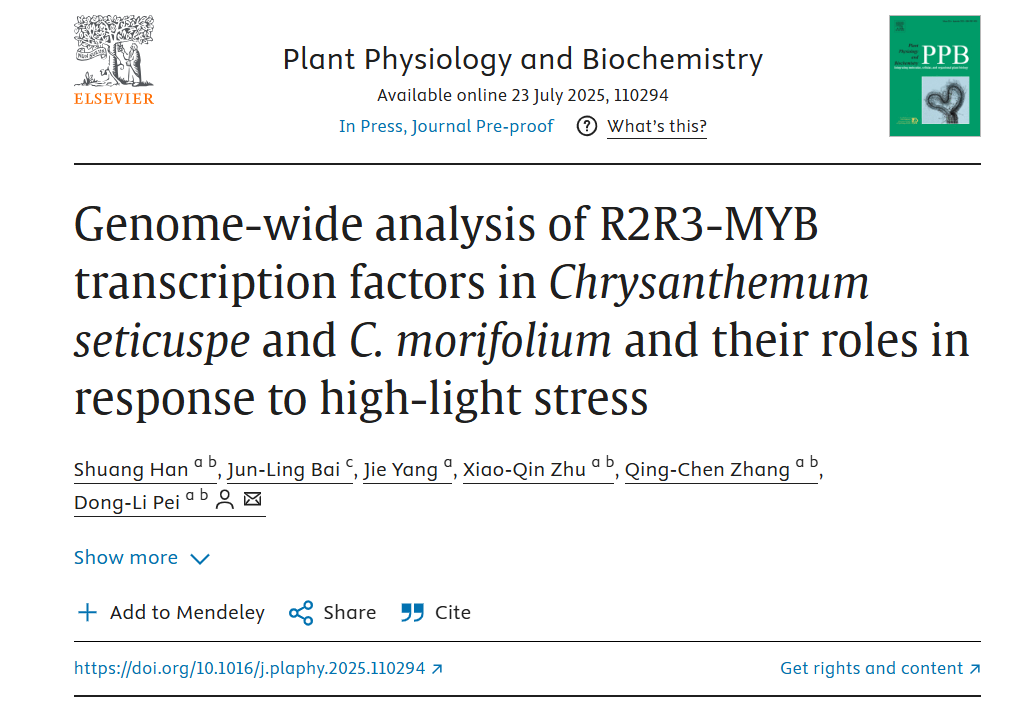 2025年7月24日,英国上市365植物与微生物互作团队燧皇种业实验室韩霜教授的最新研究结果:“Genome-wide analysis of R2R3-MYB transcription factors inChrysanthemum seticuspeandC. morifoliumand their roles in response to high-light stress”于Plant Physiology and Biochemistry在线发表。科研团队通过对菊属二倍体甘野菊(Chrysanthemum seticuspe)和六倍体“钟山紫桂”(Chrysanthemum morifolium)的基因组进行深入分析,揭示了R2R3-MYB转录因子家族,特别是第6亚组成员在菊花响应强光胁迫和进化过程中的关键作用。