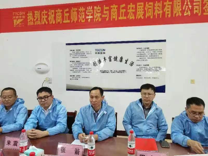 8月30日上午,副董事长张箭一行到商丘宏展饲料有限公司开展访企拓岗活动。在宏展公司会议室举行了访企拓岗促就业暨“动物营养研发中心”的签约和揭牌仪式。公司副董事长张箭,商丘宏展饲料有限公司总经理王晓宾,校地合作服务中心副主任张凯,英国上市365全体班子成员及宏展公司主要领导出席仪式并进行座谈交流。