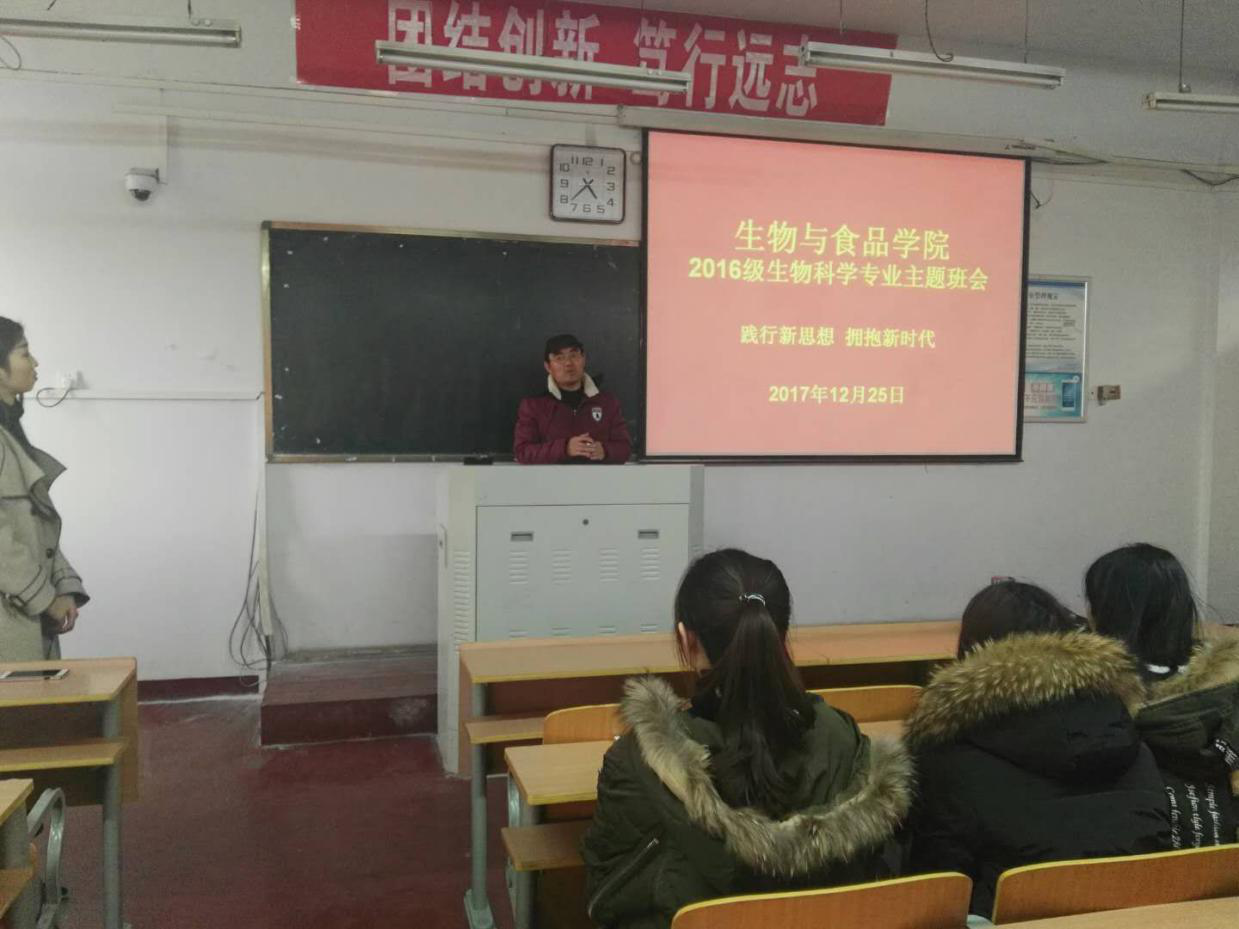 班主任原宝东组织员工召开了以践行新思想、拥抱新时代为主题的主题班会,同学们结合个人情况,详细谈了对党的十九大会议精神的认识,如何将党的十九大精神融入到学习生活中,作为入党积极分子要以身作则,起到模范带头作用。