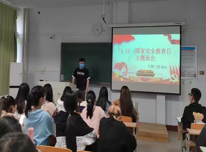 生物科学(全免)21-1班班长刘畅带领同学们观看国家安全教育日宣传视频,通过“谁是间谍”的情景模拟小游戏,充分调动了大家学习国家安全知识的积极性,进一步增强大家的国家安全防范意识。