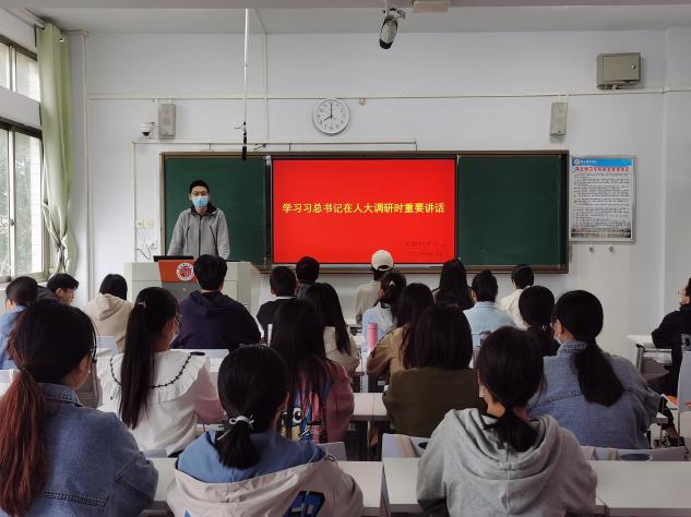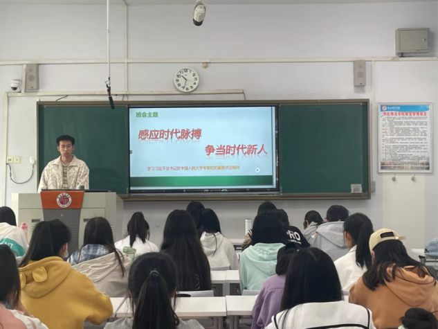 在2019级班会中,各班班长邀请同学们分享自己对习近平总书记在考察中国人民大学时的重要讲话精神的理解,并表示在今后的学习之中将加倍努力,在青春的赛道上奋力奔跑,争取跑出当代青年的最好成绩。