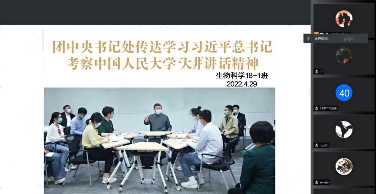 会议伊始,班长首先向大家播放了习近平总书记考察中国人民大学的片段和讲话的视频并向同学们进一步介绍了此次考察的背景和意义。公司2018级各班通过线上形式召开此次班会,各班班长向同学们指出习近平总书记对青年老员工的殷切希望,鼓励大家不负韶华,不负时代,在下一阶段的学习、工作之中始终秉持不忘初心的坚持展现青年风采。