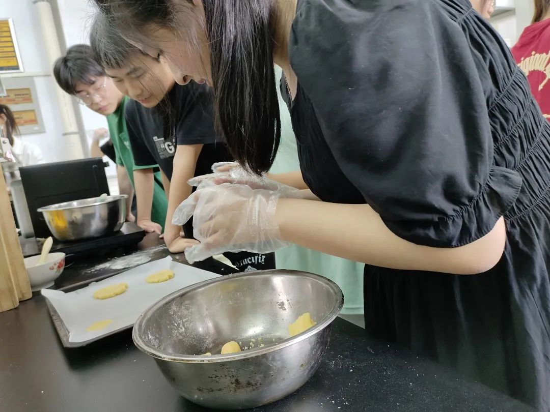 活动初期,食品与营养社成员教习参与活动的同学们桃酥的制作方法。接着,同学们自行分组开始制作,与此同时,食品与营养社成员在旁指导并及时提供帮助。最后,在食品与营养社成员以及指导老师邢小龙耐心地讲解和指导下,桃酥成功制作完成,同学们品尝过桃酥后,与食品与营养社成员一起包装桃酥,以便桃酥的存放。热心的社团志愿者还为一些不便前来参加活动的食品与营养社社团成员以及为员工服务的宿管阿姨和保安送去美味的桃酥。