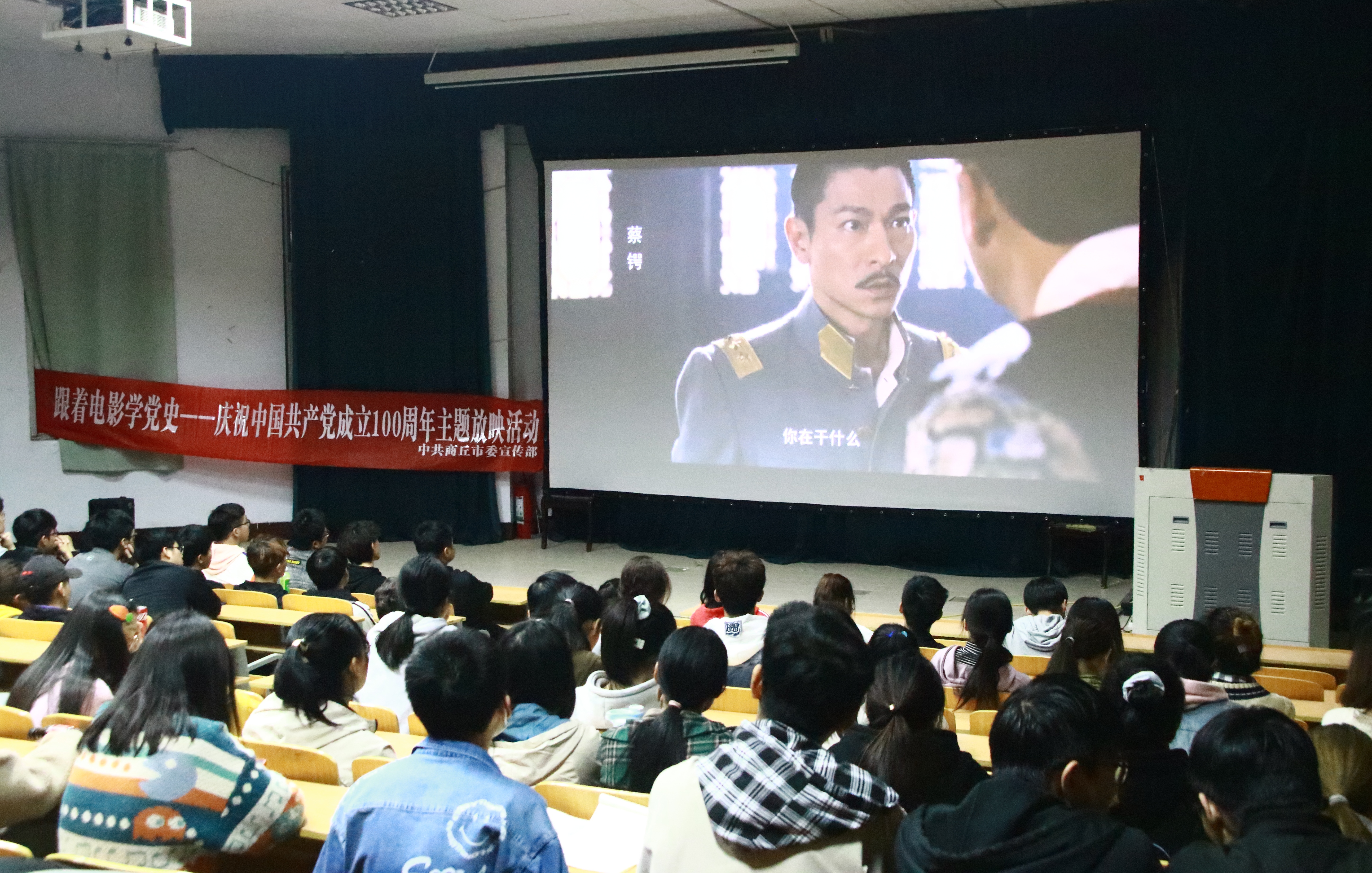 活动开始前,参与此次活动的同学陆续抵达现场。活动开始后,首先由活动负责人进行点名签到。接着,公司员工会主席朱德良发言指出此次活动的重要意义,并希望同学们能认真观看电影,培养爱国情怀。随后,负责人即开始播放电影《建党伟业》。电影时长两个多小时,在场人员全神贯注,沉浸其中,看到动情处同学们更是情难自已,眼眶濡湿。跟随电影寻找探索共产党峥嵘岁月背后的艰难心酸,同学们感慨万千,纷纷表示通过此次观影活动真正体会到了建党历程的艰辛。电影结束后,同学们有序离场。