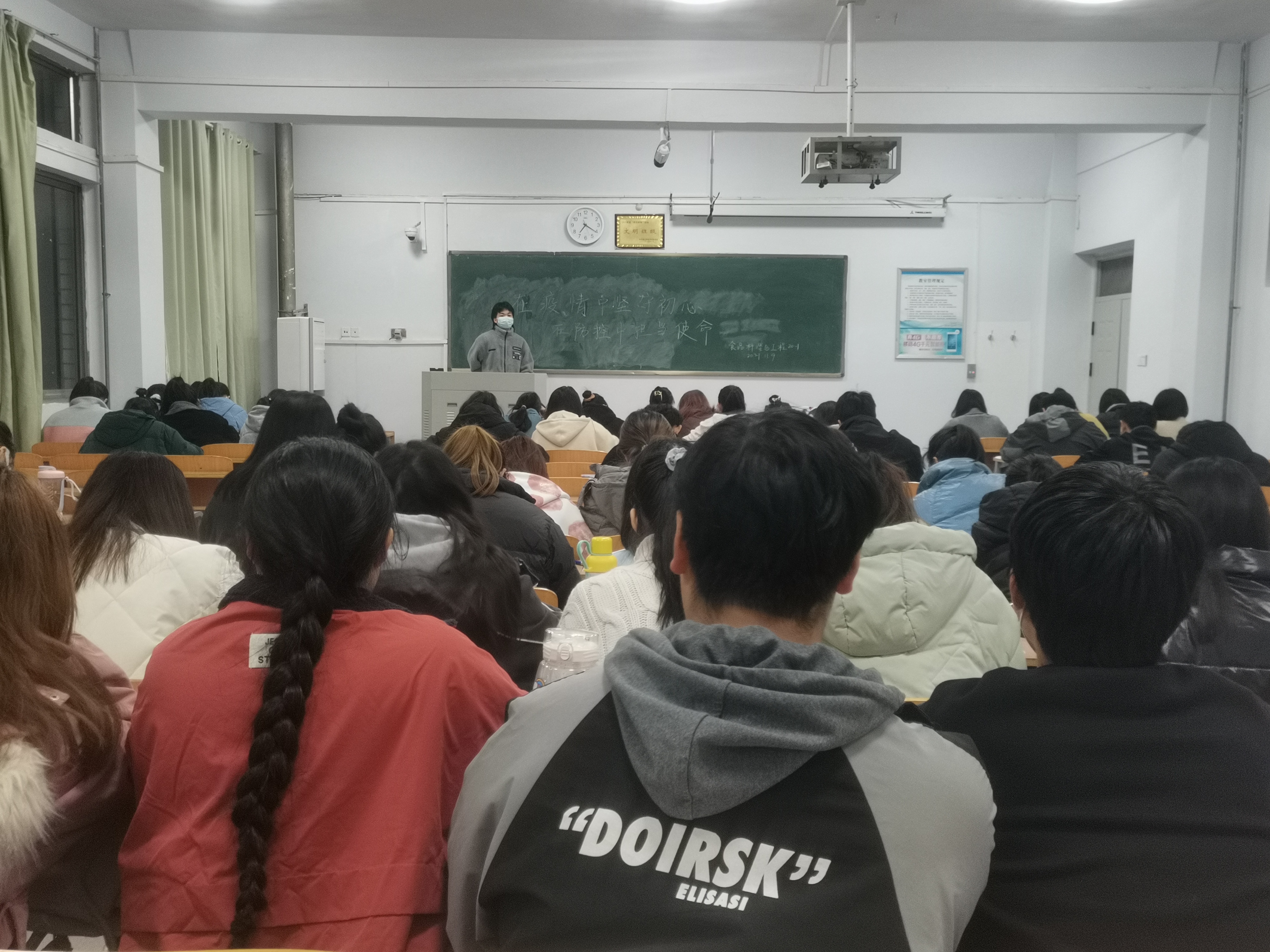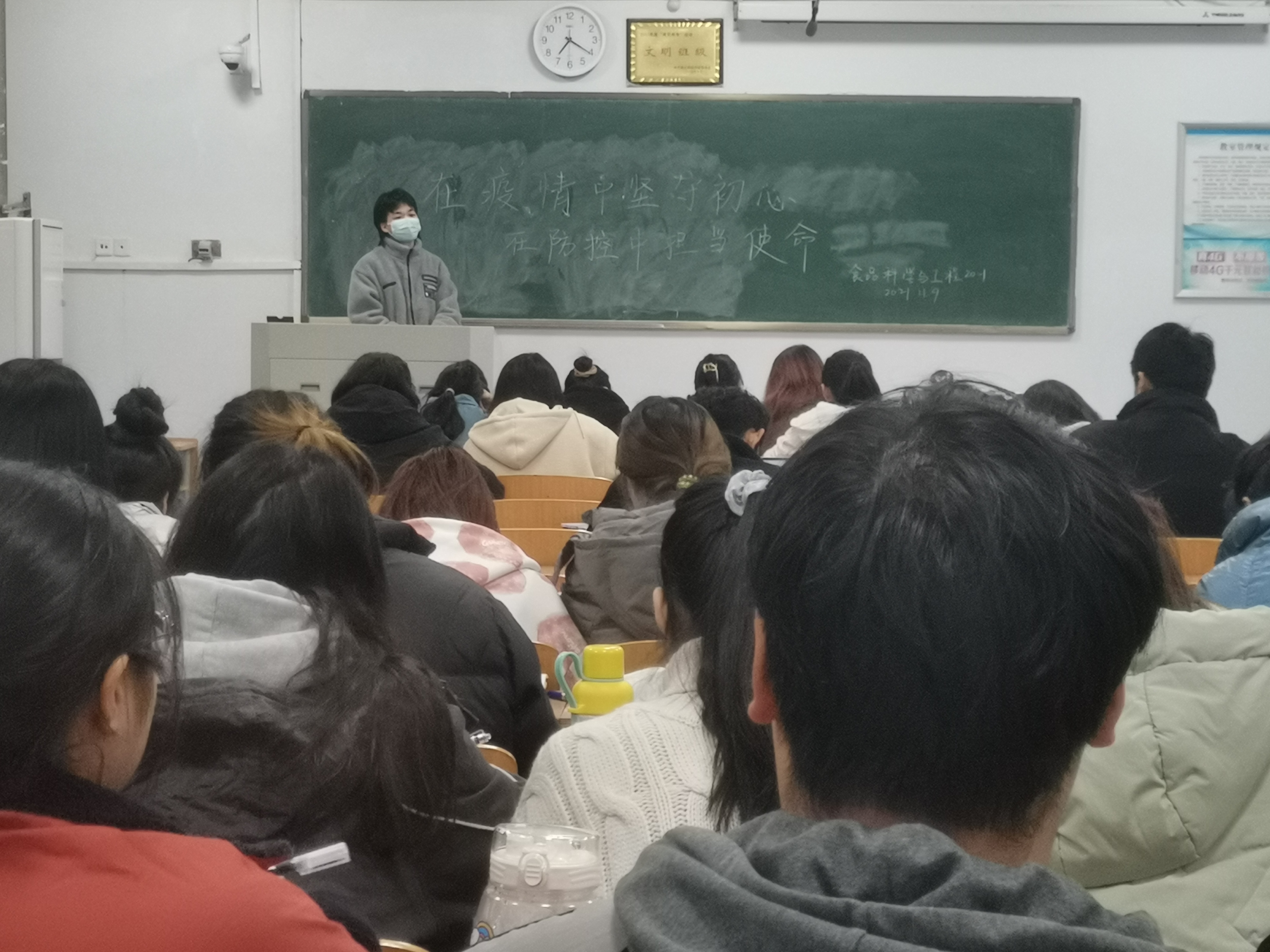 为了增强员工疫情防控意识,让员工掌握疫情防控的基本知识,并落实到生活实际中,2021年11月10日晚食品科学与工程20-1班在一号教学楼自习室开展疫情防控主题团日活动,此次活动由班长李超主持,食品科学与工程20-1班全体同学参加本次活动。