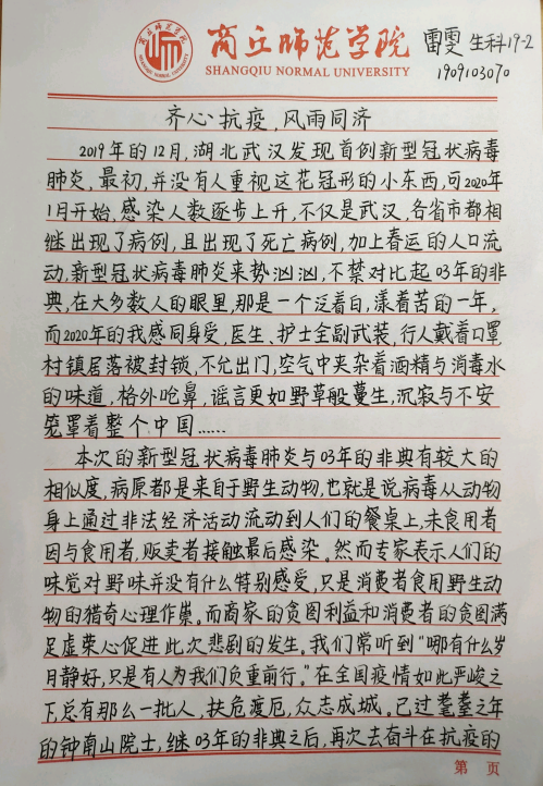 活动开始前,宣传部发布说说宣传活动,办公室创建活动群聊,通知各班班长鼓励同学们积极参加。活动开始后,同学们踊跃参与,书写出自己对抗疫英雄的敬佩以及对逆行者们的赞美,写作完成后,交给本班班长,再由工作人员统一收集。作品收齐后,评委团经过认真地选拔,将作品评出一等奖5名,二等奖10名,三等奖12名,并为获奖同学发放奖状。