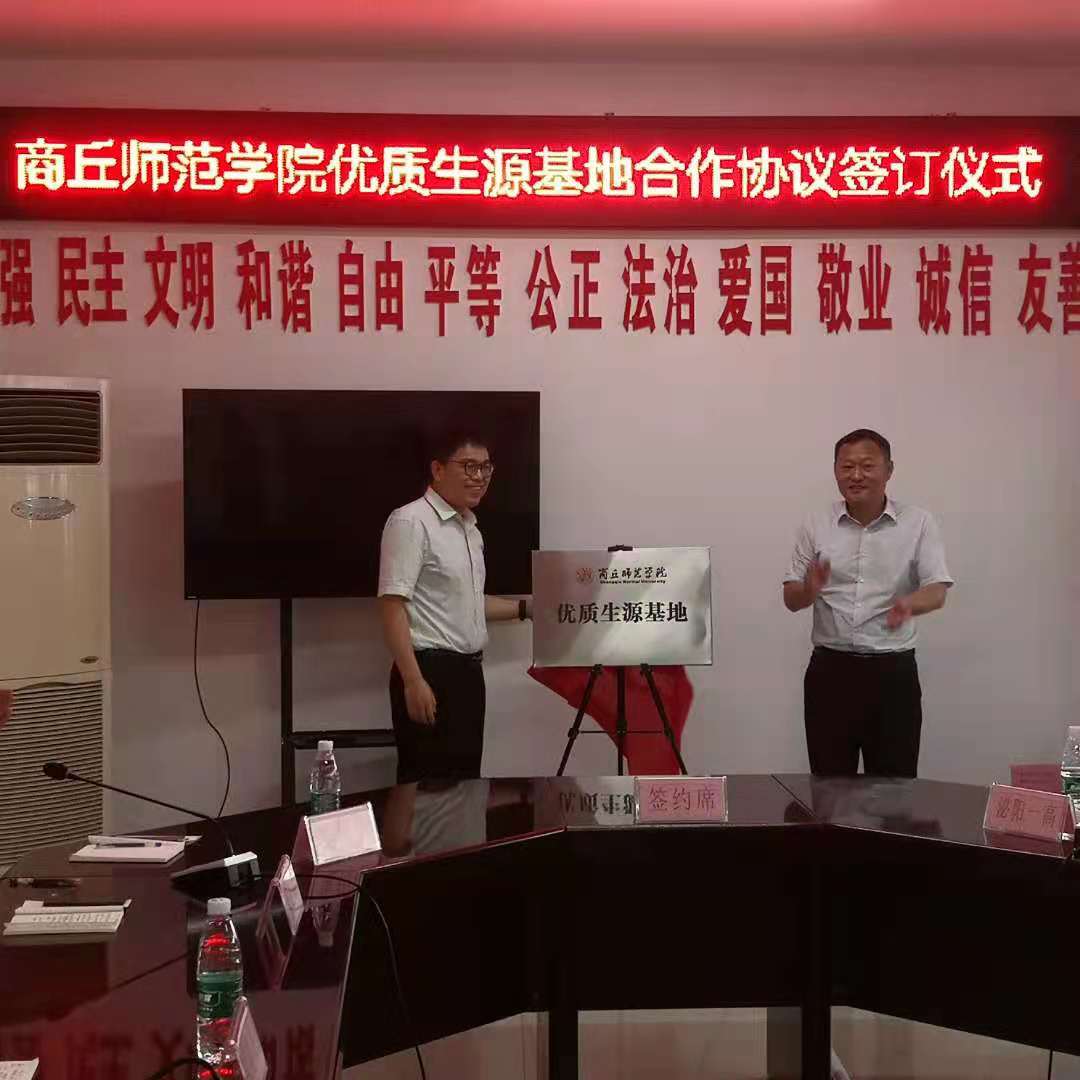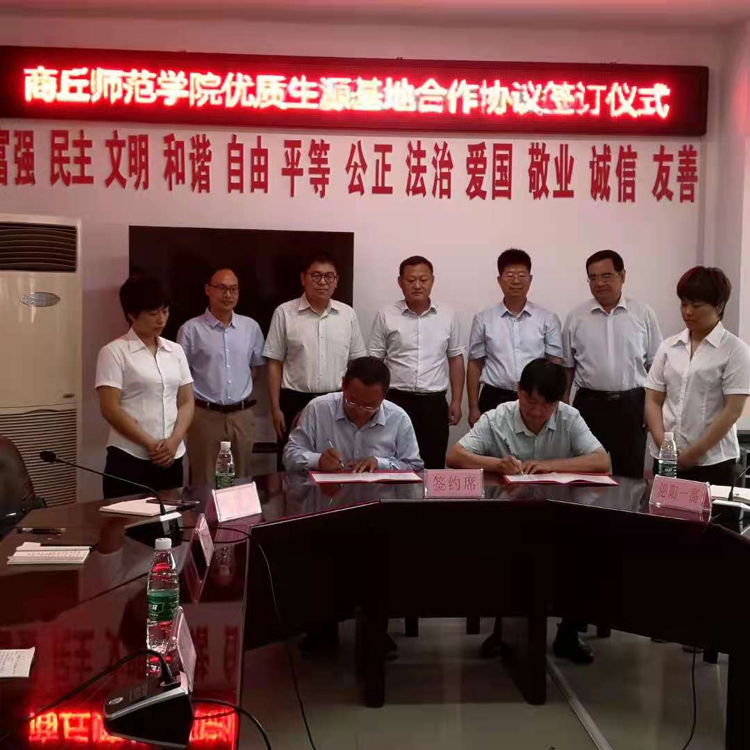 6月16日上午,公司党委书记朱震杰、副经理韩进诚一行赴驻马店市泌阳县,与泌阳县一高签署优质生源基地合作协议。泌阳县委副书记郭洪波、常务副县长陈东、副县长杨广礼、县政府三级调研员吕涛,以及县教育局、泌阳一高的领导老师参加了签约及挂牌仪式。会议由泌阳县常务副县长陈东主持。