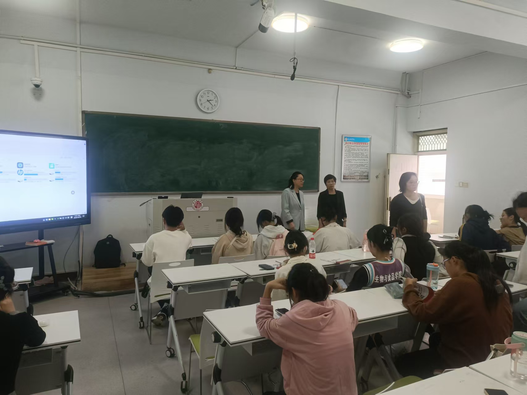 10月17日下午,院领导带领全体辅导员到一号教学楼深入课堂,现场督查公司学风建设工作,重点对教师授课情况、员工出勤情况、课堂教学秩序情况进行了检查。经理周庆峰对公司教学管理工作取得的成绩表示充分肯定,同时对个别课堂存在的问题予以督查,对相关人员提出整改要求。