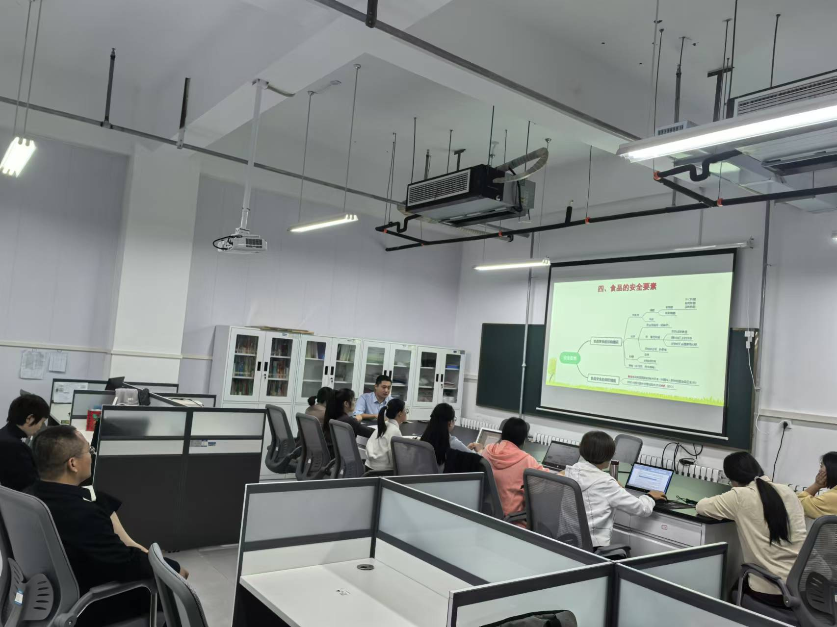 食品科学系全体老师依次展示了各自的课程教学设计和教学内容。老教师们进行了示范教学,通过讲解授课过程中的各个环节,向年青教师们传授了丰富的授课经验。各位年青老师也根据各自授课过程中的疑问,向老教师们请教并得到了有效建议。