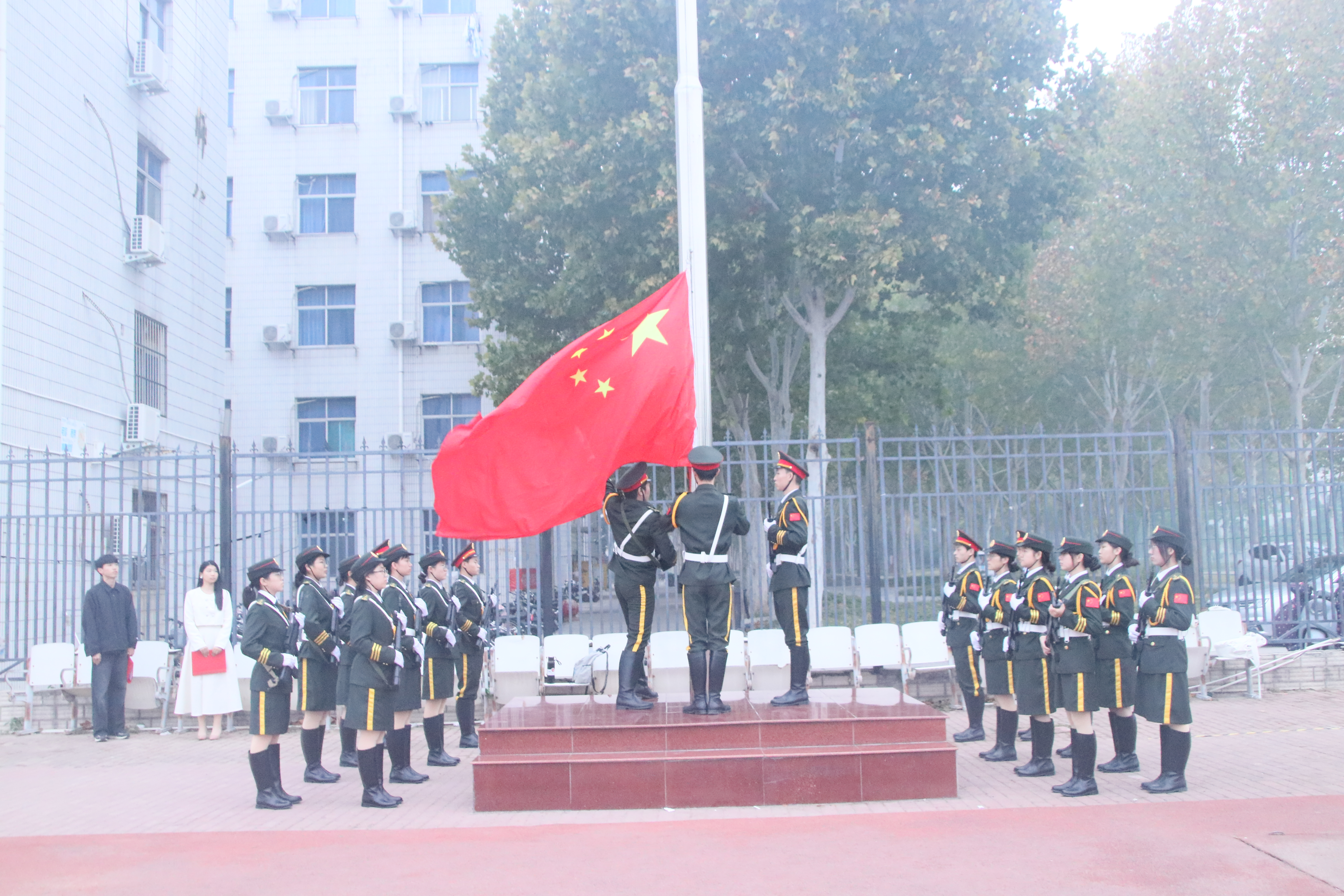 仪式开始,国旗护卫队迈着整齐有力的步伐入场,护送五星红旗走向升旗台。伴随着《义勇军进行曲》的奏响,鲜艳的五星红旗缓缓升起,全体师生行注目礼,齐唱国歌。