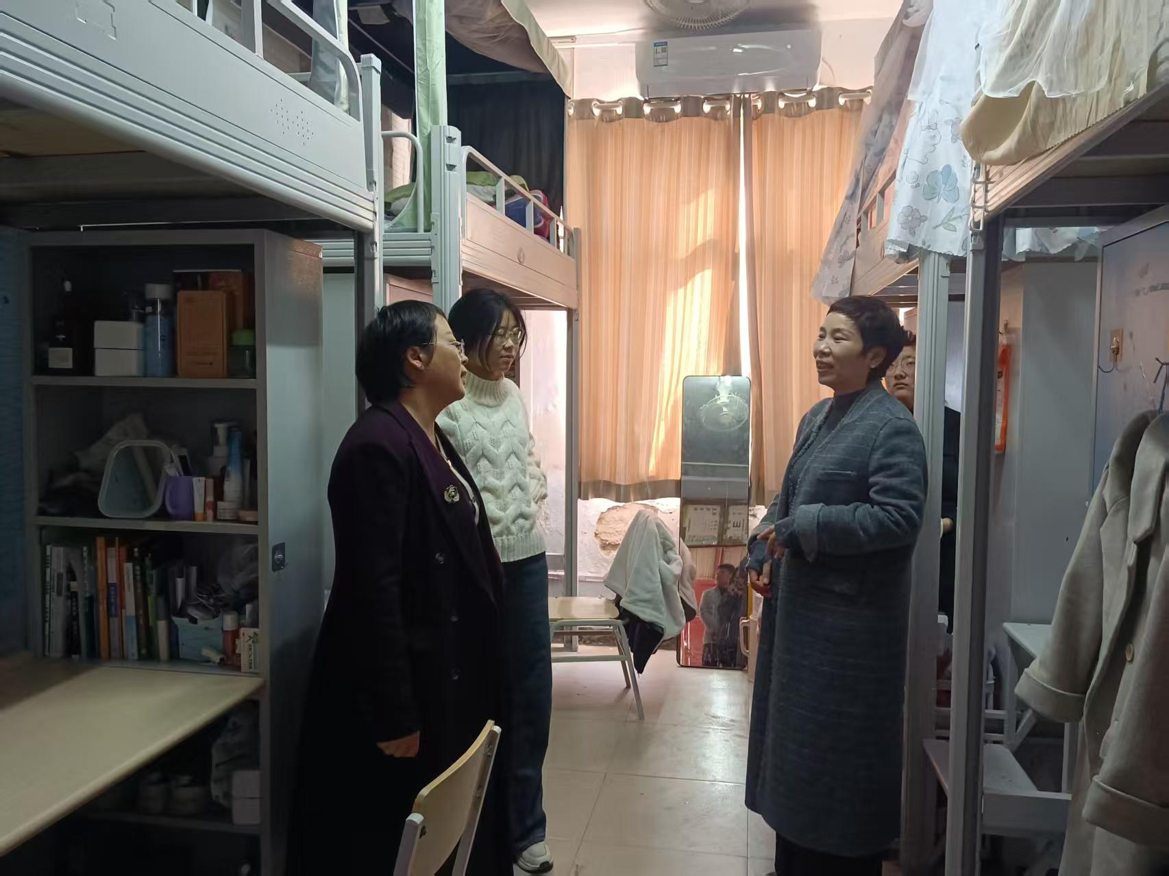 为进一步加强员工宿舍管理,排查安全隐患,规范宿舍卫生,2月28日,公司党委副书记李杰、丁波莉带领全体辅导员深入公寓1号楼、4号楼和10号楼走访员工宿舍,深入了解员工思想、学习、生活、安全、卫生等情况,推进落实宿舍文明建设。