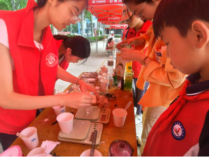 活动中,同学们严格遵循操作流程,从精确称量、调配原料,到加入精油,再到加水搅拌,每一步都认真细致。制作完成后,同学们还发挥创意,为扩香石装饰配饰花、丝带等,展现出独特的巧思与创意。