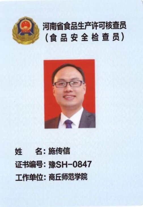 据悉,施传信老师此前已被河南省市场监督管理局聘为“河南省食品生产许可现场审核员”,为公司服务地方产业发展,促进校企合作等工作提到积极作用。