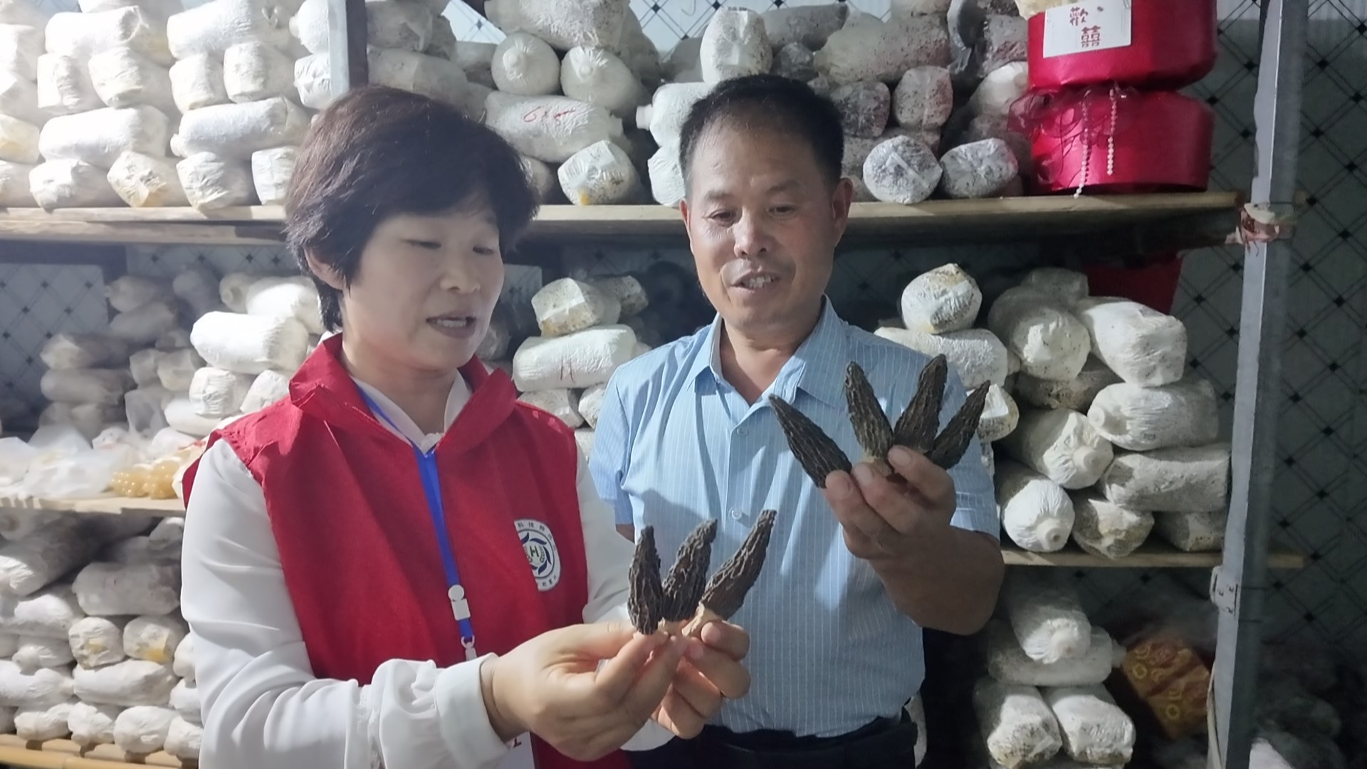 峰源食用菌种植基地,种植有平菇、木耳、羊肚菌等多种食用菌,在实际发展过程中,面临着菌种性状退化、病虫害防控、出菇品质与产量不稳定、高温天气等共性技术难题。朱晓琴老师实地察看了基质制作、菌种培养、出菇场地准备等各个环节,与基地负责人进行了深入细致的交流。在栽培技术、精深加工等方面进行沟通和指导,对食用菌种植过程中的技术要点和注意事项进行详细讲解。