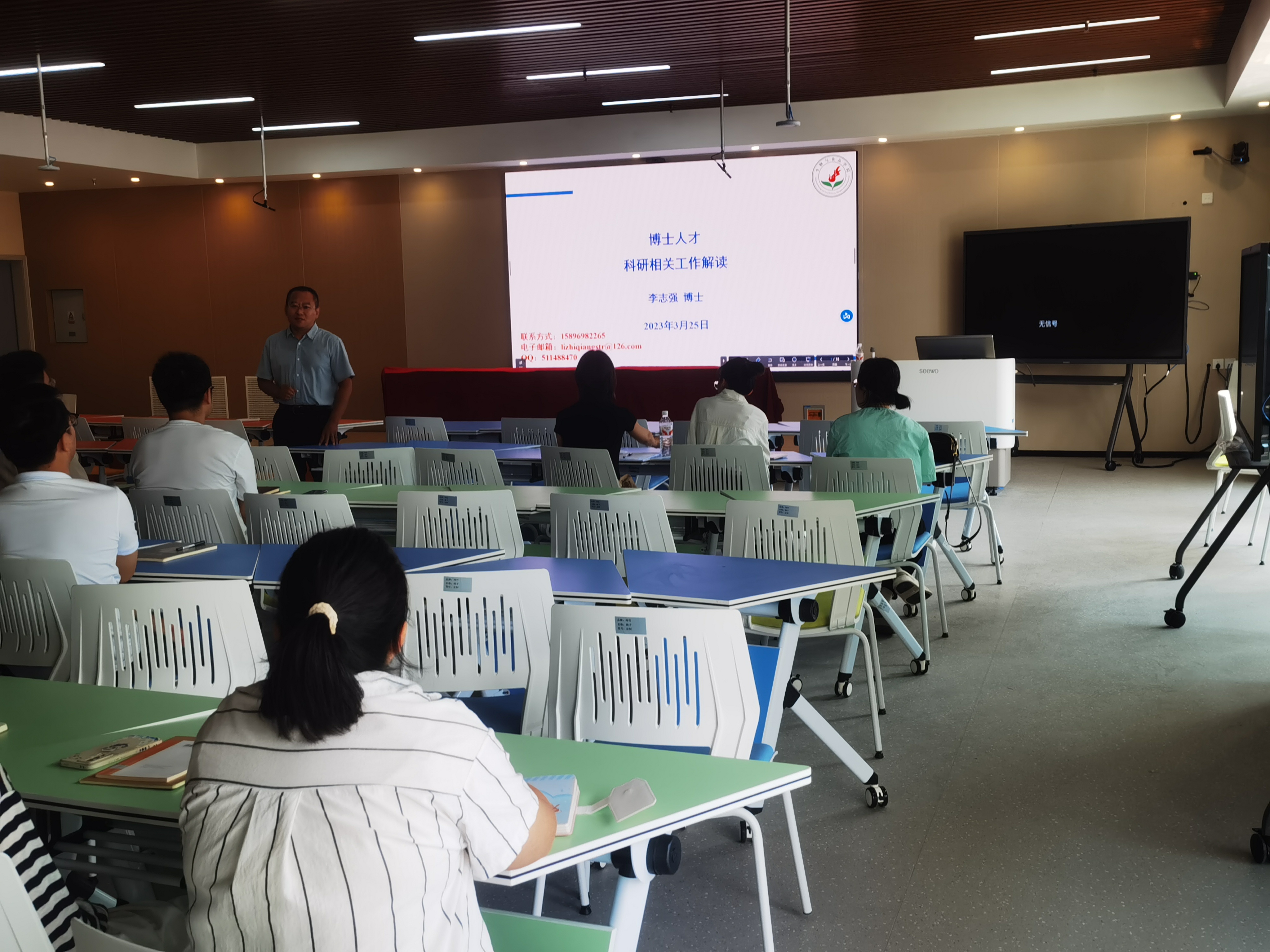 会议由韩进诚副经理主持,他首先对今年新入职博士的到来表示热烈欢迎,希望大家珍惜此次科研培训的机会。随后,科研秘书李志强博士做了“博士人才科研相关工作解读”的报告,他从科研文件解析、科研项目申报、科研奖励申报和指导员工竞赛四个方面进行了汇报。每位老师应当制定详细的科研计划,统筹安排,获得更多的成果。最后,各位博士进行了心得交流,大家纷纷表示要做好科研工作,增强信心。