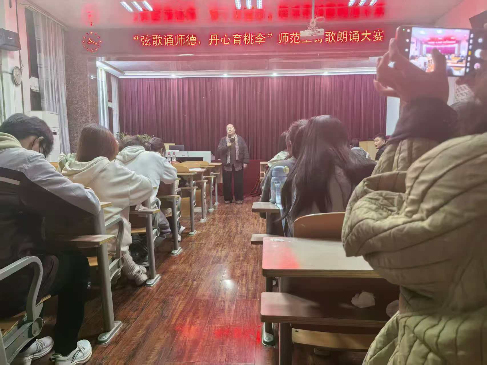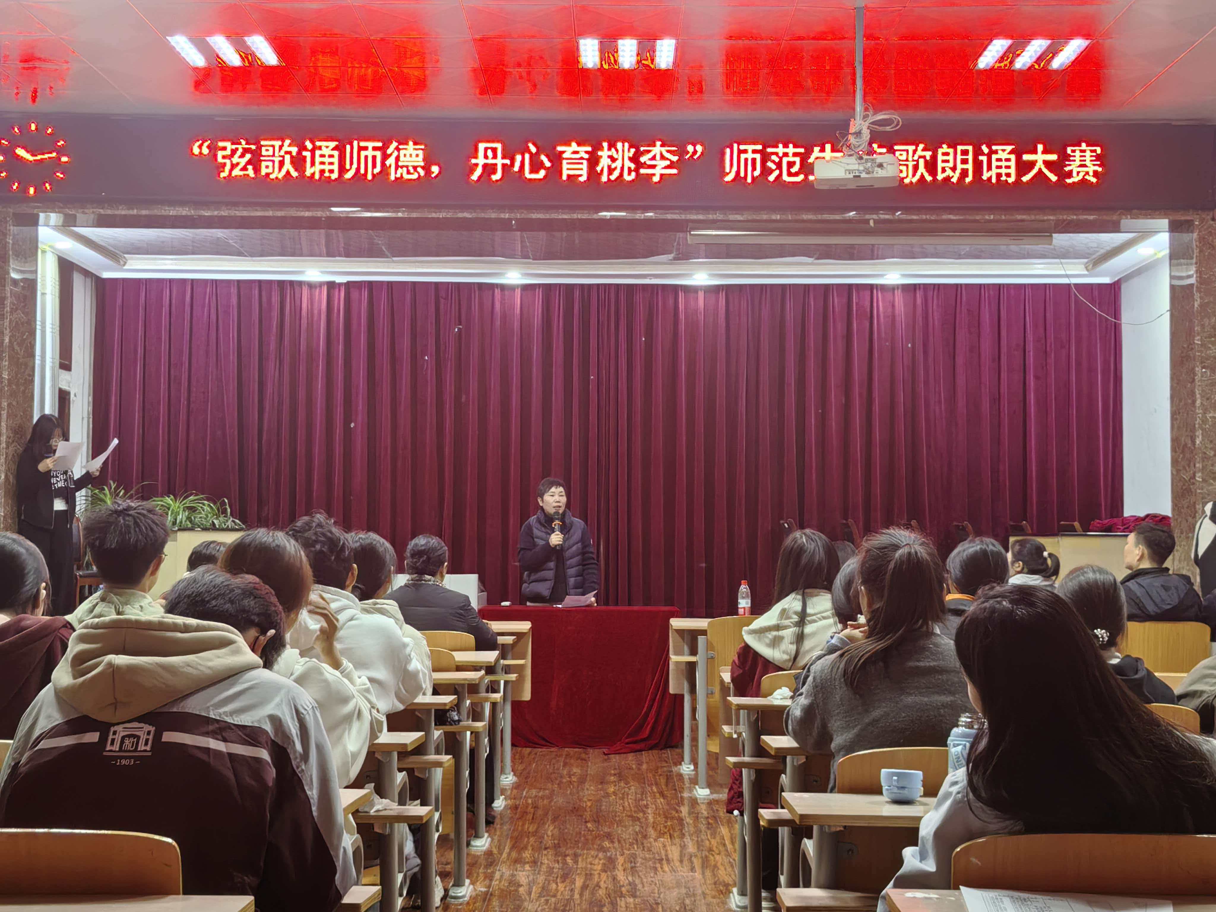 为顺应时代发展,弘扬高尚师德师风,抒发尊师重教情怀,11月11日晚,生物科学专业在公司报告厅举办了“未来智慧名师”系列活动之“弦歌颂师德,丹心育桃李”诗歌朗诵比赛。公司党委副书记李杰、丁波莉应邀出席,辅导员孟鑫明、班主任王志利、陈冠华、丁亚南和班助吕嘉婷担任评委。