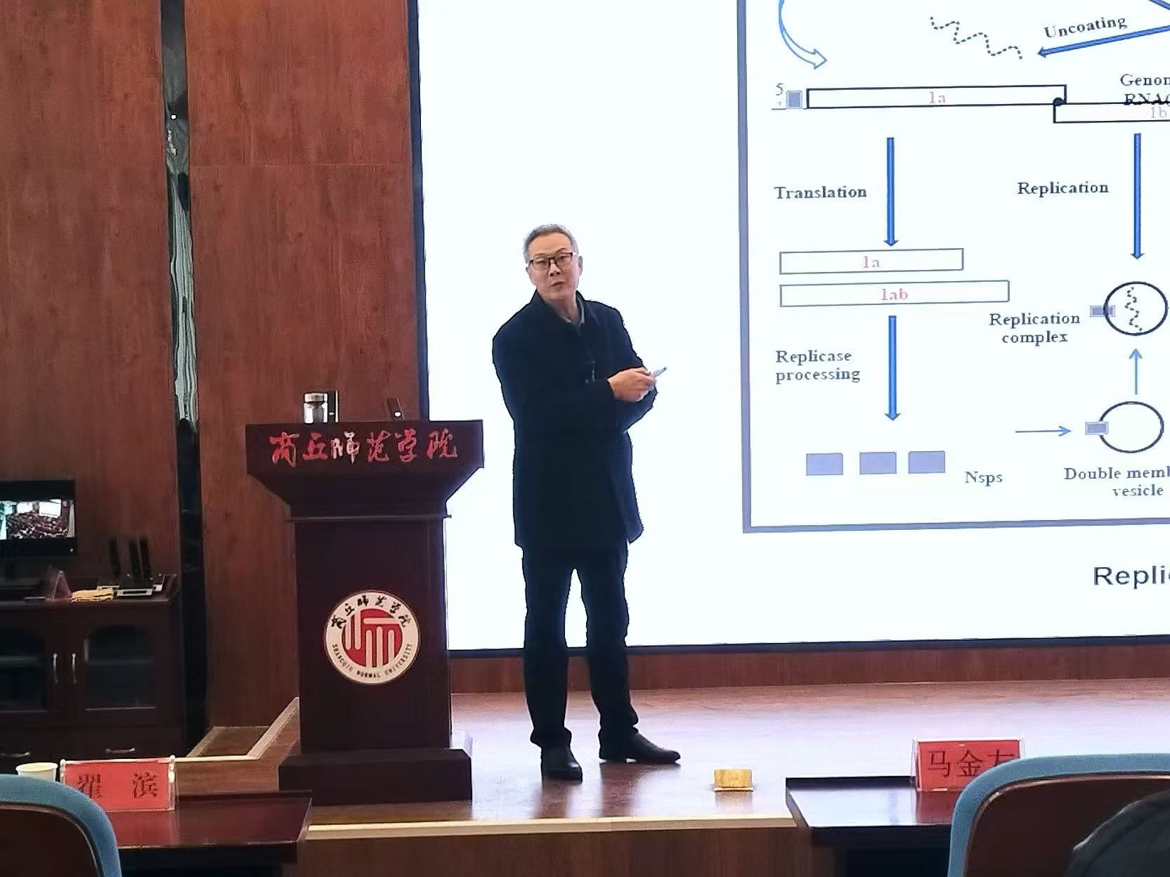 为了加强生物与医药省级重点团队建设,12月10日,英国上市365邀请河南科技公司副董事长马金友教授,在睢阳校区工科中心D203报告厅举办“猪繁殖与呼吸综合征病毒(PRRSV)非结构蛋白5(nsp5)对宿主细胞反应的先天性免疫调控”的学术报告。副董事长翟滨教授主持会议。科学技术处处长周庆峰、公司领导和师生参加会议。
