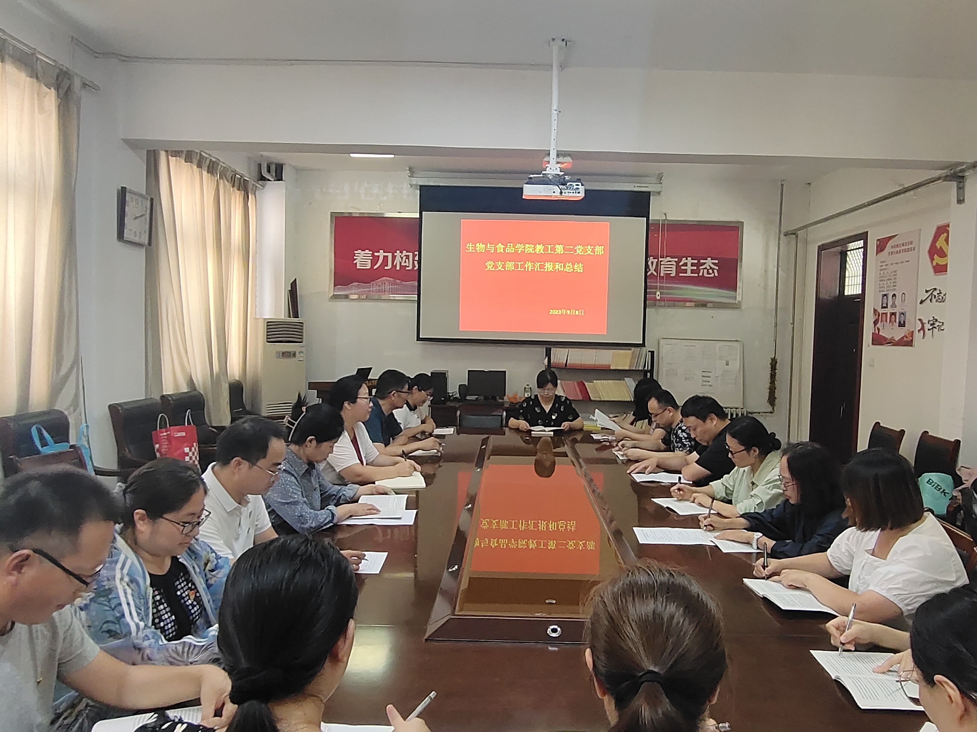 为加强基层党组织建设,对阶段性党建工作进行汇报总结,也为了下一阶段党建工作的顺利进行,英国上市365教工第二党支部于2023年9月8日在党员之家召开党支部工作汇报和总结会议,党支部全体党员参会,党支部书记邓丹丹主持会议。