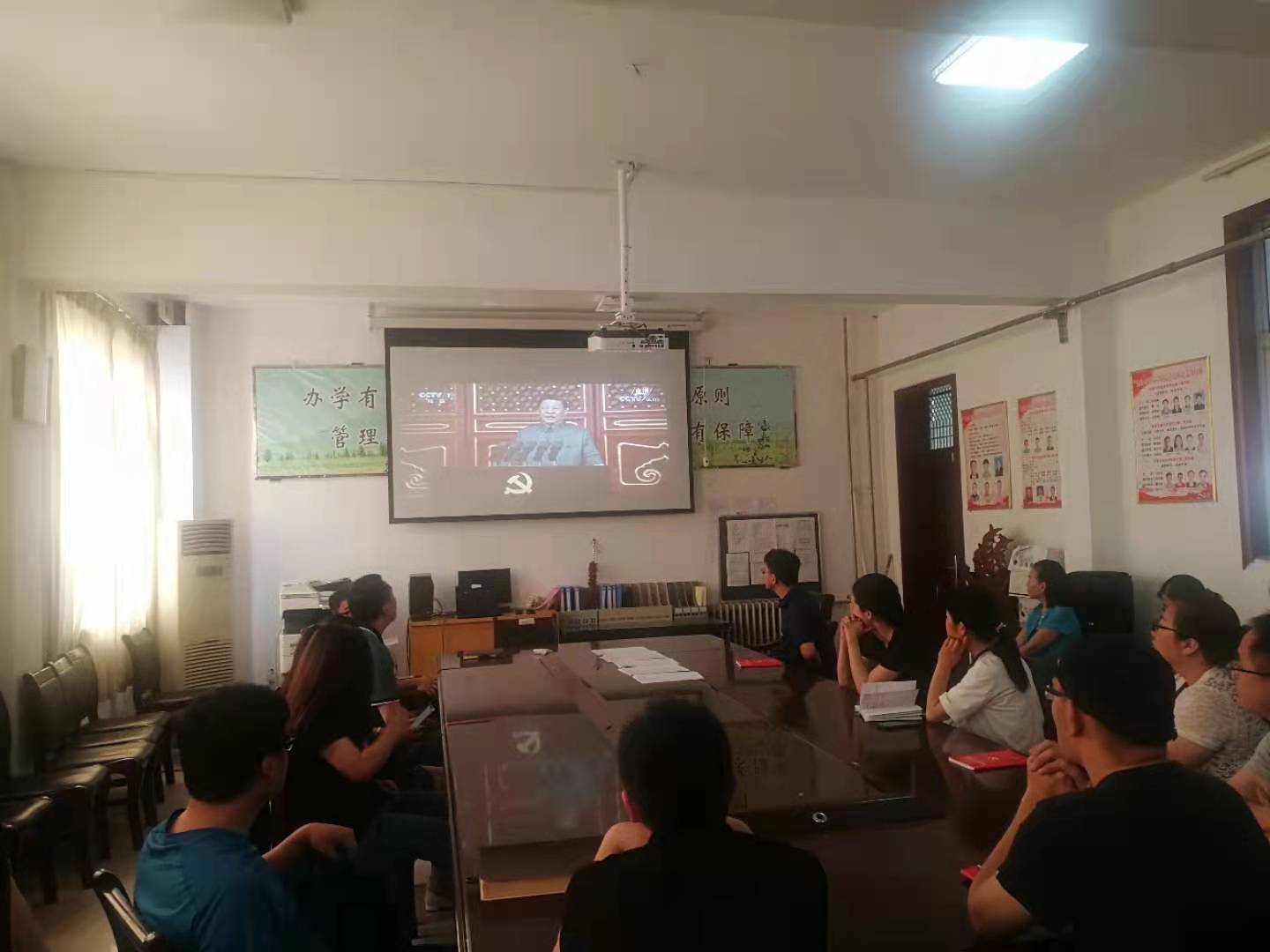 公司组织员工党员在教室和宿舍收看庆祝中国共产党成立100周年大会。