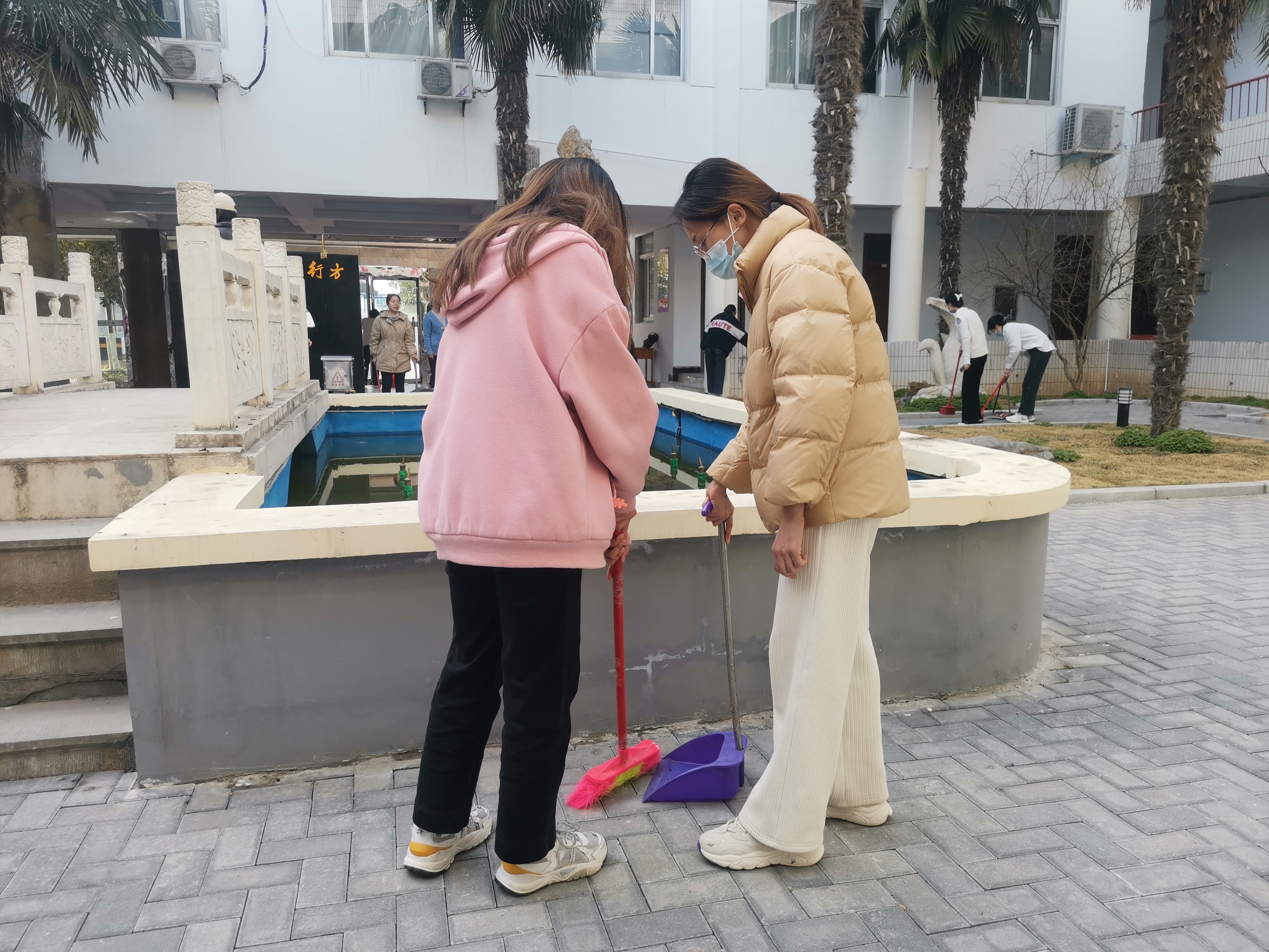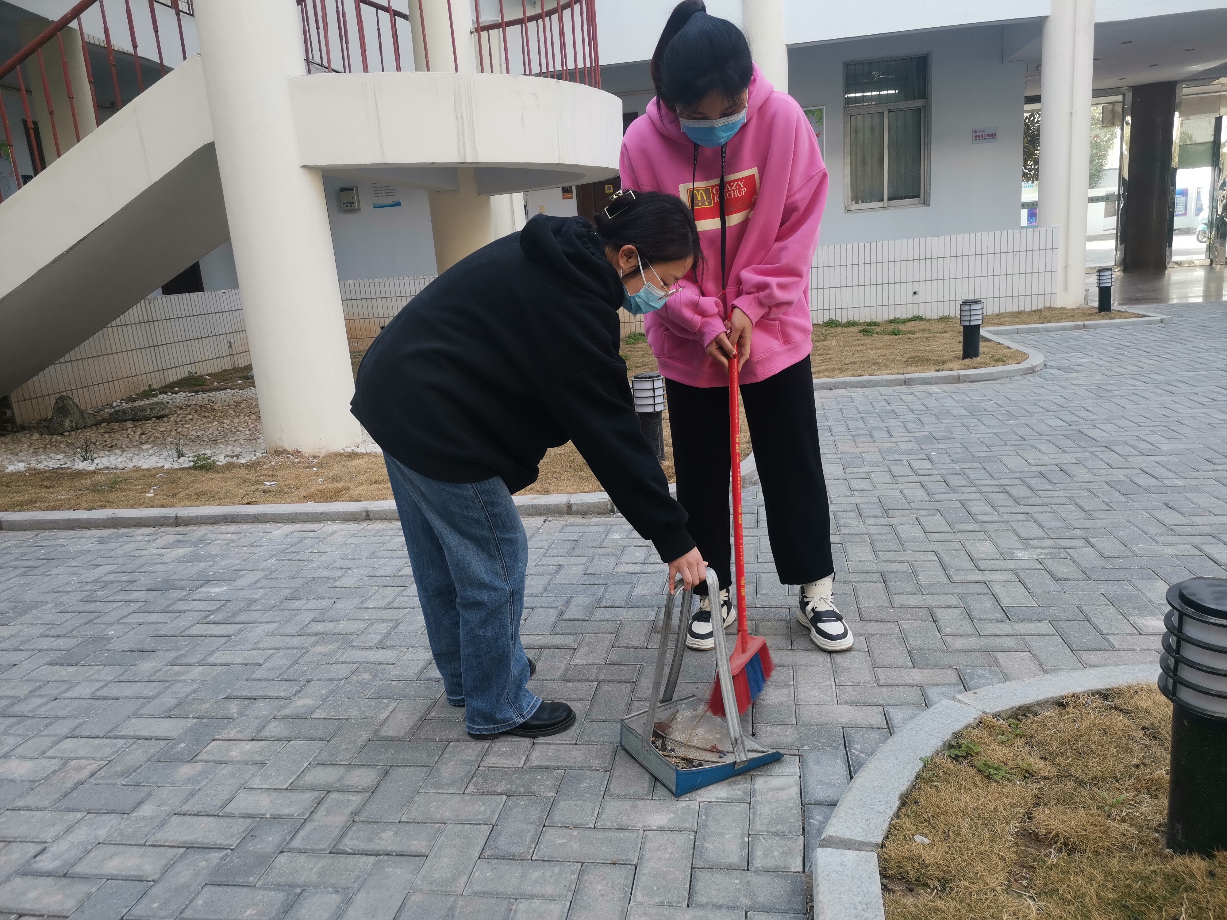 清扫活动前期,由各班活动负责人分配清扫区域,确定时间,并积极组织两班同学。下午,两个班级的党员同学于约定时间到达一楼小院,按照顺序领取不同的清扫工具,相关负责人将员工分配成小组到指定区域负责清扫。