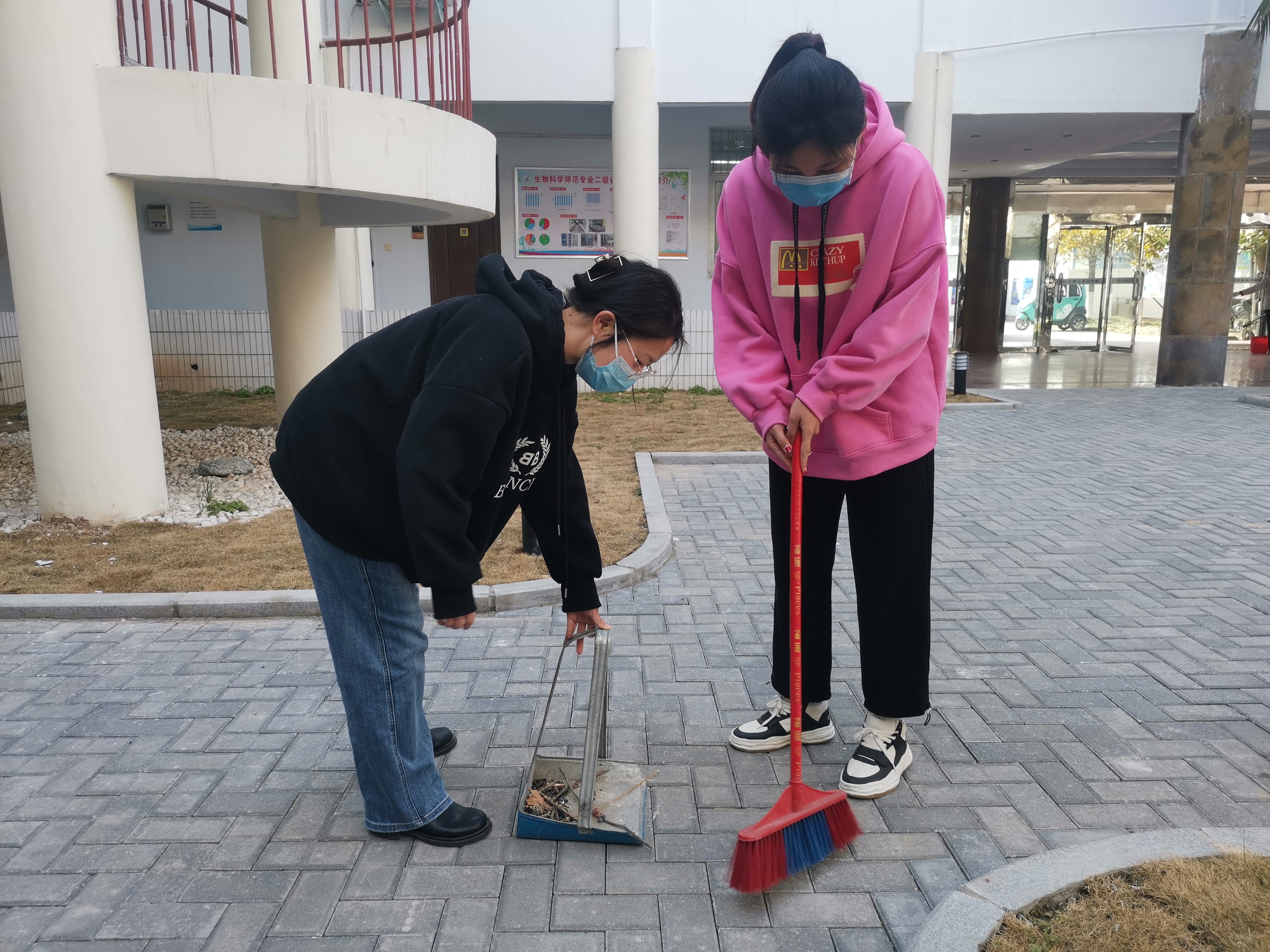 在清扫过程中,各位同学们都以极大的热情投入到本次清扫活动中,负责清扫一楼小院卫生的同学们认真清扫着小院的垃圾,而负责报告厅卫生的同学们也在细心擦洗着桌椅。各个班级的同学合理分工,清扫工作迅速进行着。最后,由负责人检查一楼小院和报告厅的清扫情况。