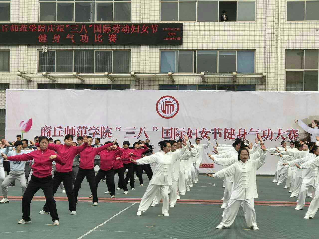为深入贯彻落实《全民健身条例》,为了让教职工掌握一项终身健身的体育项目,为了庆祝“三八节”到来,3月10日下午,在公司平原路校区篮球场内举行了由公司工会主办,体育公司承办的庆祝“三八”国际劳动妇女节教职工健身气功八段锦比赛。本次活动共有23个分会,500多名教职工参赛,比赛通过抽签分成了A、B、C、D四个大组,每个大组6个分会进行同时比赛。校工会主席朱伟致开幕词,他首先向公司全体女教师致以节日的问候,充分肯定了女教职工在工作中严谨的态度和为教育事业奉献自身的精神,公司涌现出了一批爱岗敬业、团结务实、无私奉献的优秀个人,以自尊、自爱、自强、自立的精神风貌为公司转型发展展示着自己的聪明才干;同时也指出女教工还要兼顾家庭,孝敬老人,培养孩子,所以女同志才是最辛苦劳累的人。他对女教工提出了“强身健体展风采,休养身心促发展”的希望,在今后的工作中,继续立足本职岗位,加强自身的文化知识学习,做适应新形势的新女性。