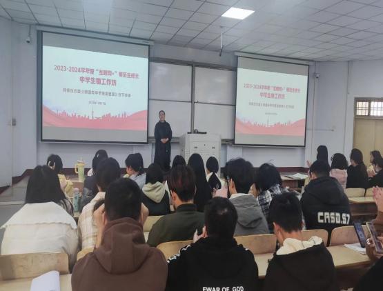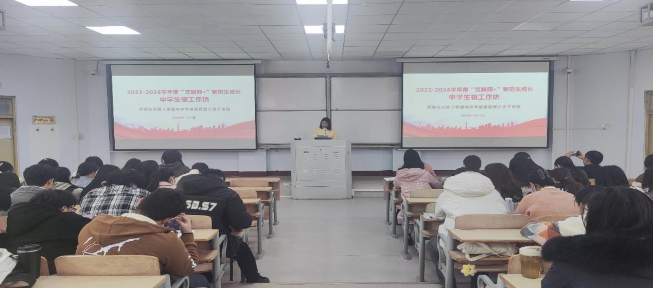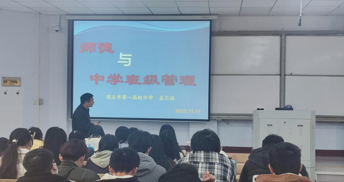 最后,商丘市第一高级中学孟志强老师开展了《师德与中学班级管理》线下讲座,孟老师向同学们分享了自己多年来公司产品心得和宝贵的经验,幽默风趣、引人入胜,使师生对本次的学习充满了定数和期待。