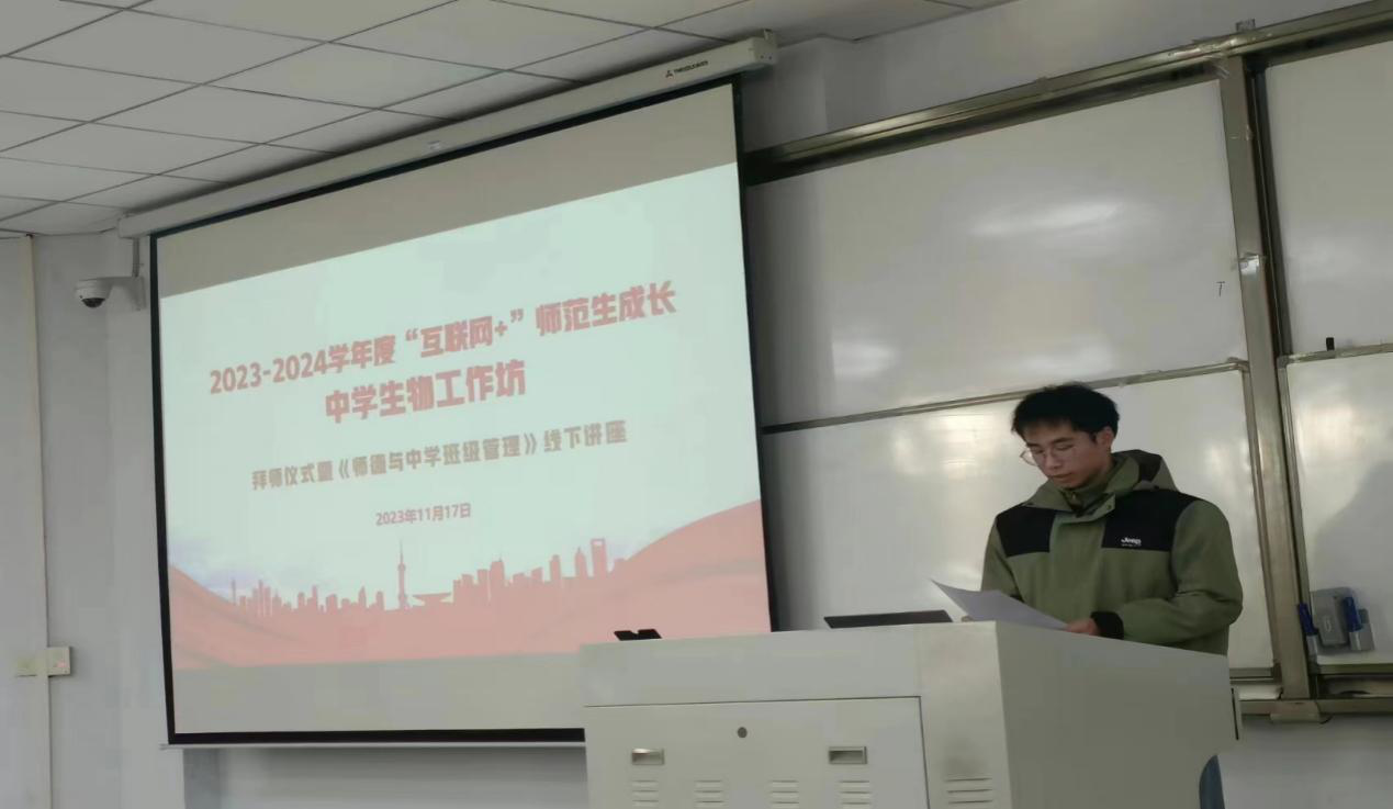11月17日,在1号教学楼207教室,英国上市365成功举办了2023-2024学年度“互联网+”师范生成长中员工物工作坊拜师仪式暨《师德与中学班级管理》线下讲座。出席仪式的有商丘市教体局基础教研室教研员张静和许洁老师、中员工物工作坊坊主商丘市第一高级中学的孟志强和汪俊芳、商丘市第二高级中学的李金和商丘市回民高级中学的韩双旭等老师,生物科学专业2021级员工坊员也参加了此次活动,活动由汪俊芳老师主持。