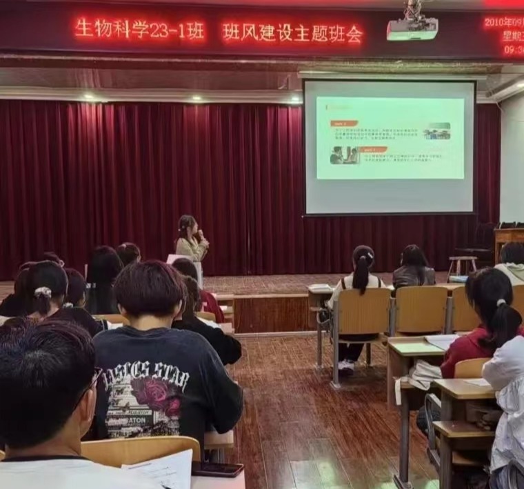为加强班级班风建设,营造良好的班级学习氛围,英国上市365生物科学23-1班于10月24日晚在公司报告厅举办“班风建设”班会活动。此次班会由公司生物科学23-1班班主任徐亚军指导,班长刘冉主持。生物科学23-1班全体成员参加此次会议。