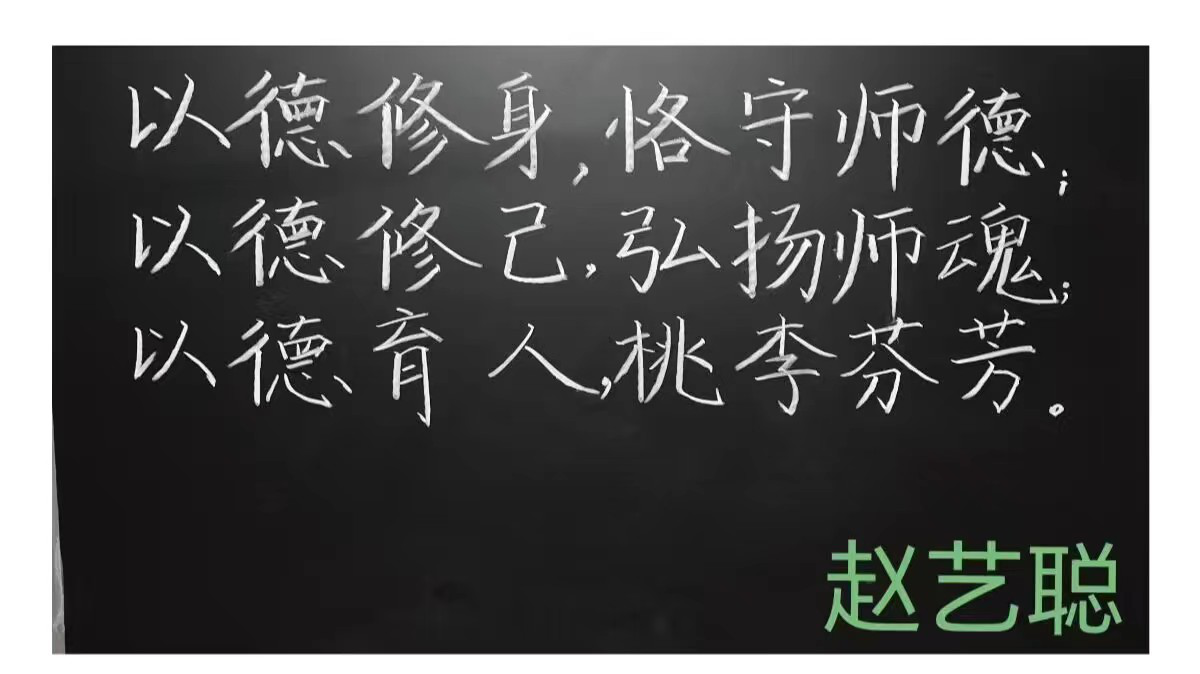 粉笔字是教师应具备的基本技能。每一位师范生都应坚持不懈地练习,写好粉笔字,横平竖直写字,方方正正做人,为以后步入教师工作岗位打好坚实的基础。