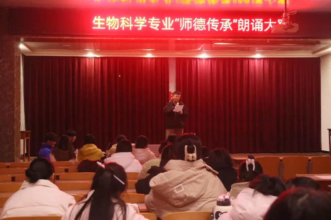 为了帮助同学们树立正确的师德价值观,丰富同学们的课余生活,英国上市365于11月30日晚上七点在公司报告厅举办“师德传承”主题朗诵比赛。本次比赛由公司生物科学23-2班班长高子晗主持,生物科学专业23级各班班长担任评委。