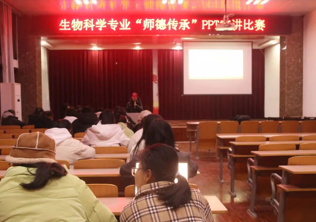 为了弘扬师德精神,培养员工的师德修养,生物科学专业于12月1日晚上7点在公司报告厅成功举办“师德传承”PPT宣讲比赛。本次比赛由生物科学专业全免23-1班姚泽雨主持,生物科学专业23级各班班长担任评委。
