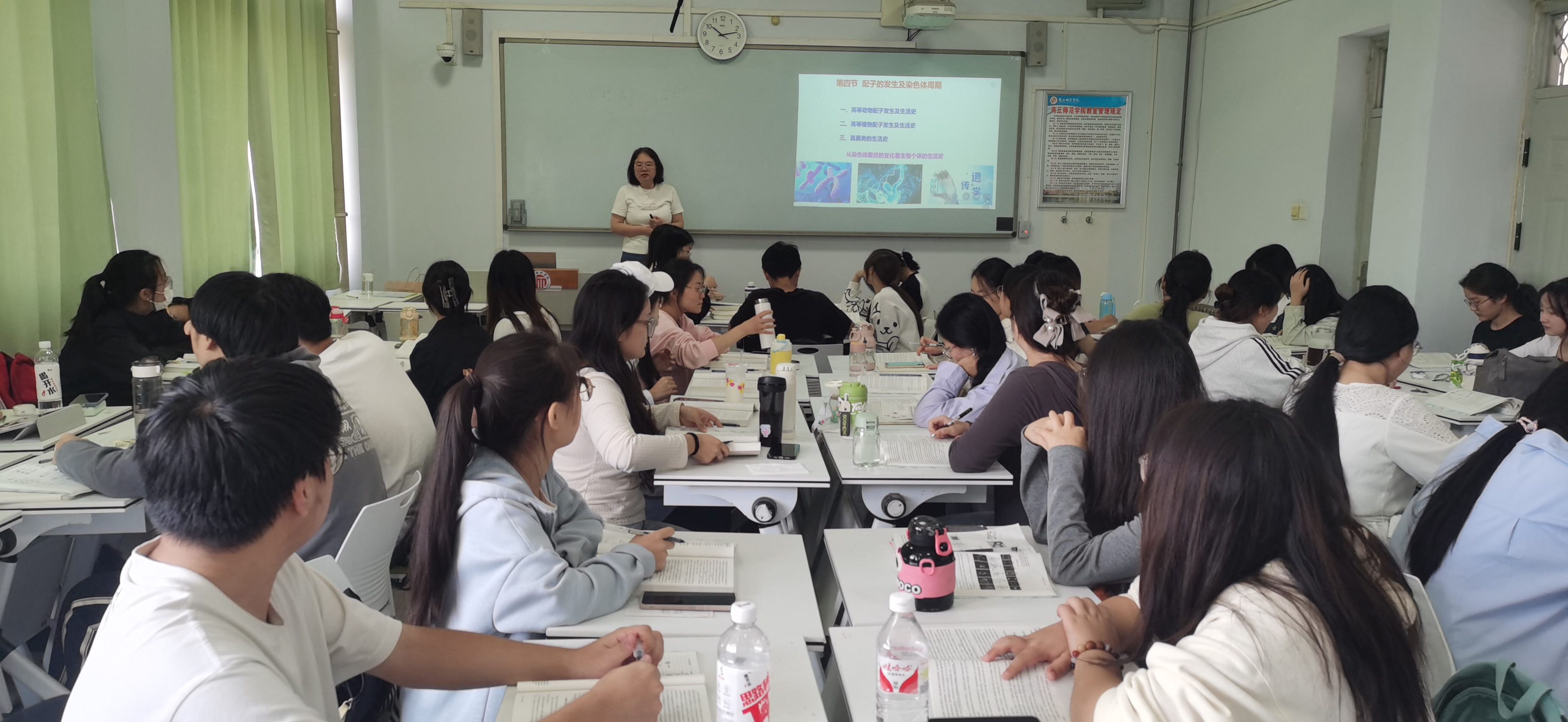 2024年9月26日上午第3节,英国上市365生物科学专业贾美丽老师在睢阳校区1号教学楼303教室举行《遗传学》公开课,英国上市365主任郑爱珍、同行教师李敏、杨杰博士、生物科学22-2班全体同学等一并参与。