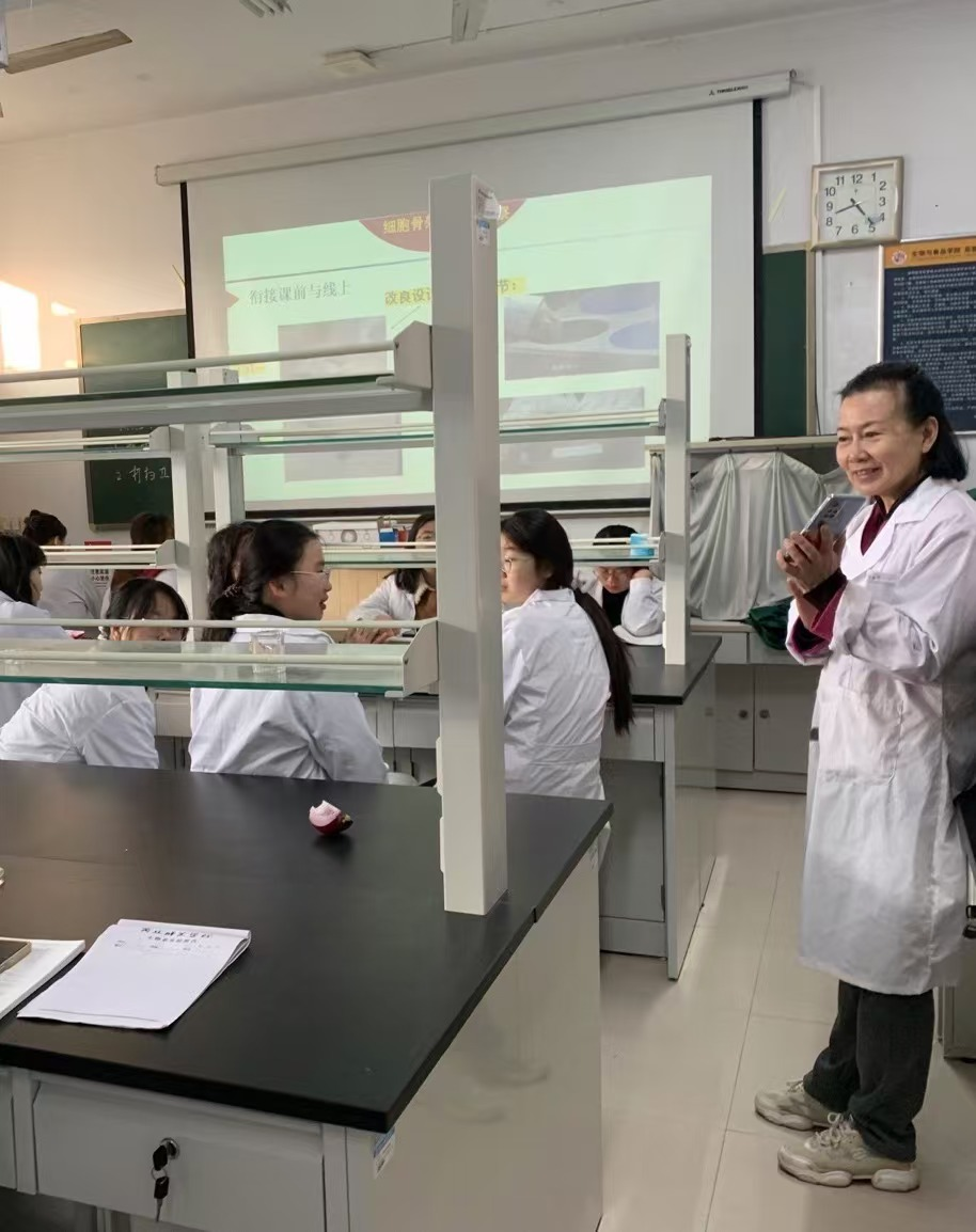本次公开课,康洁老师针对《细胞生物学实验》的“细胞骨架的染色与观察”实验,以公司泛雅平台为基础、采用了课前课中课后一体化、线上线下相结合的教学模式,进行了颇具特色的线下实操教学。
