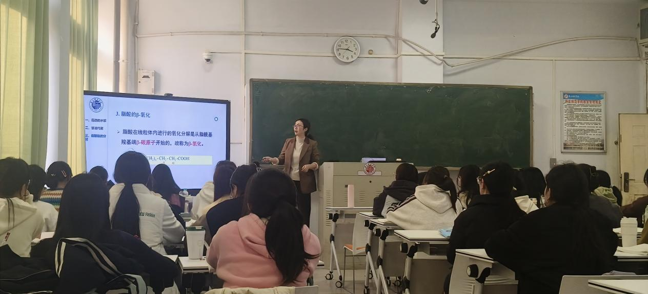 2024年11月21日下午,由王文静老师主讲的《生物化学》课程在1号楼304教室开讲。英国上市365英国上市365主任郑爱珍教授、李敏博士进行了现场观摩指导。