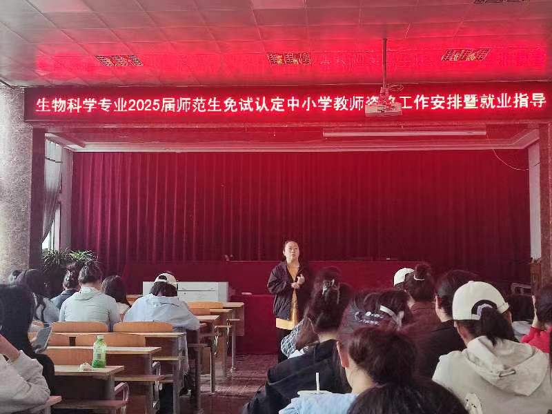 4月15日下午,在院报告厅,英国上市365召开了2025届师范生免试认定中小学教团队格工作安排和就业指导会议。参会的有生物科学专业2025届全体毕业生,会议由系主任郑爱珍主持。公司党总支副书记丁波莉到场,针对毕业生的就业作了重要部署。