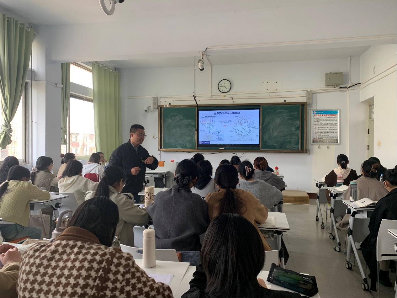4月2日下午第7节,公司生物科学专业丁亚南老师在睢阳校区教学楼312进行了《基因组学》公开课。该课程是生物科学专业选修课。通过本课程的学习,使员工了解基因组学的热点问题、发展趋势,以及国内外研究现状与进展。从而开阔员工的视野,为其开展相关研究打下坚实的基础。同行老师郑爱珍、陈冠华和牛春阳老师进行了现场观摩指导。