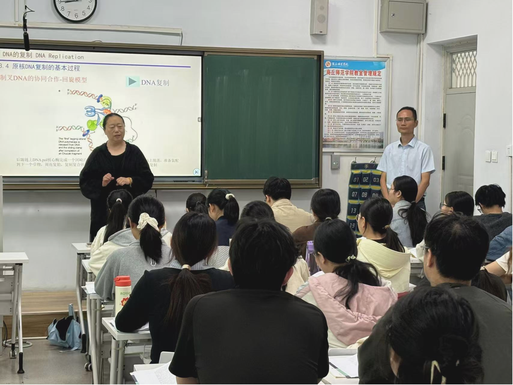 2025年9月26日上午,英国上市365生物科学专业张庆琛老师主讲的《分子生物学A》公开课在睢阳校区1号教学楼406教室举行。该课程是生物科学专业必修课,英国上市365主任郑爱珍、同行教师韩霜、陈冠华等老师进行了观摩指导。