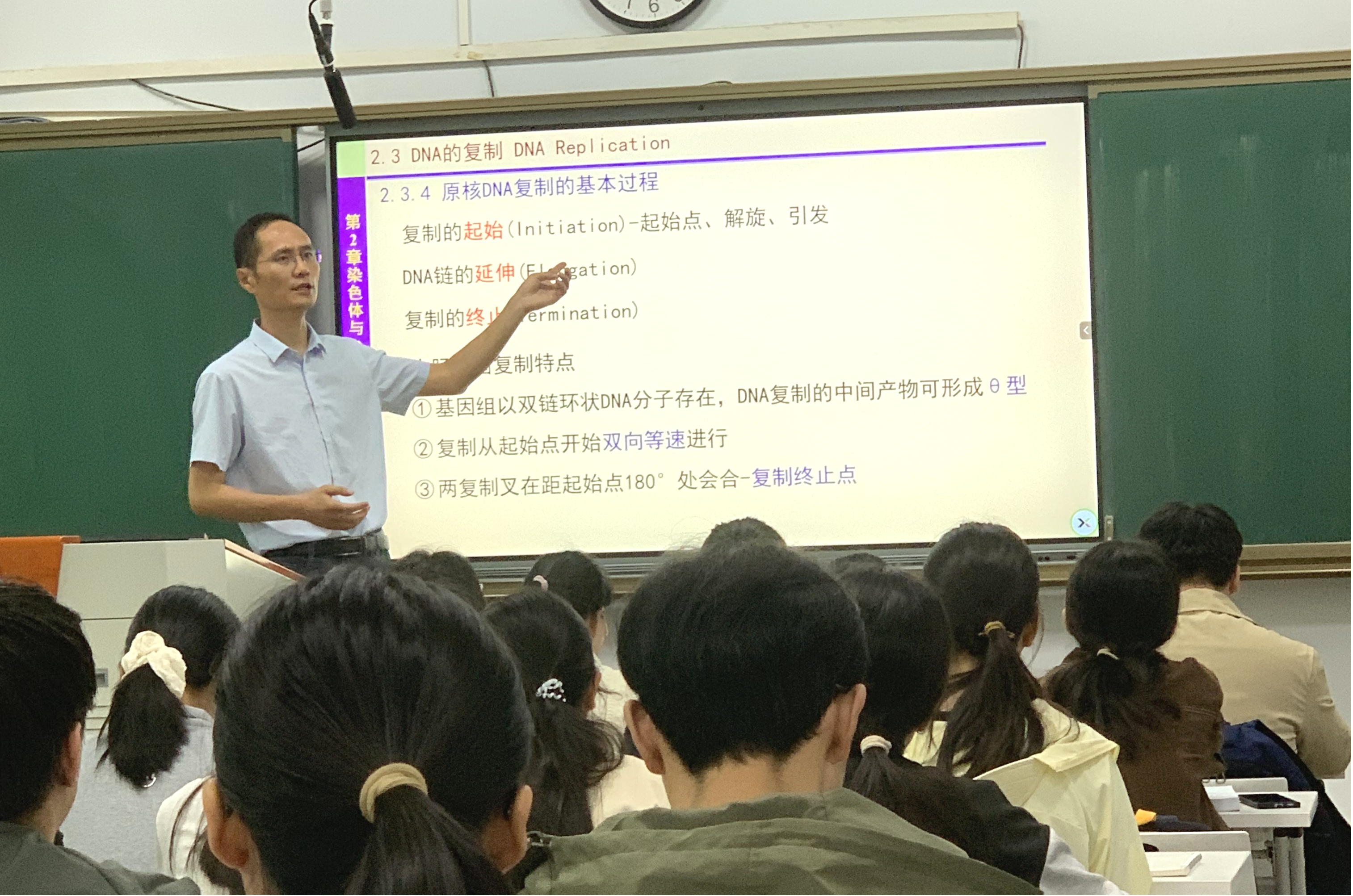 本次公开课讲授的是《分子生物学A》第2章第3节DNA的复制。张庆琛老师采用“线上+线下”混合式教学模式, 依托“学习通”平台自建课程提供的视频、主题讨论、作业,帮助员工完成预习和课后复习。线下课堂基于线上问题导入新课,正课以启发式、DNA的复制视频等引导员工共同解决重难点内容,并做好归纳总结和课后拓展。