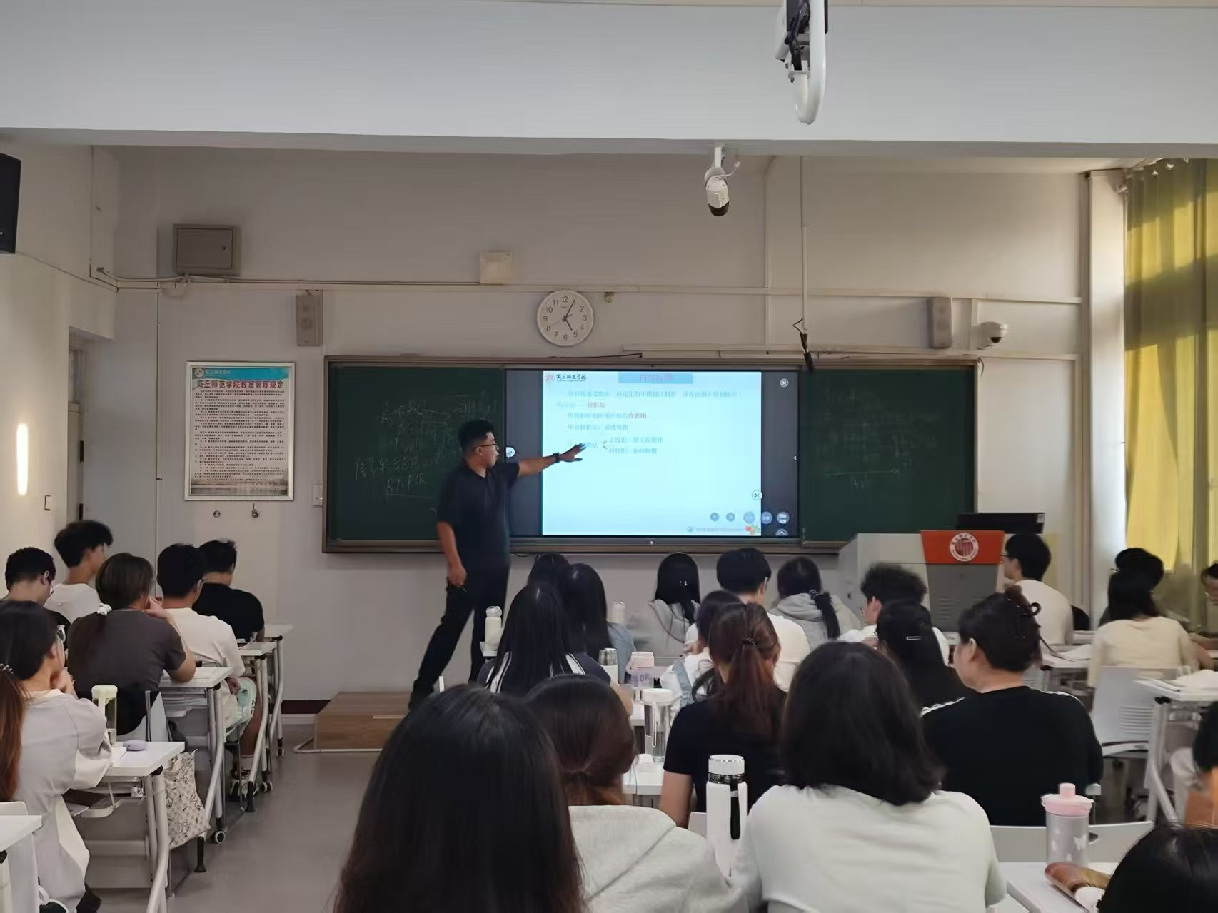 课程伊始,老师首先引导员工回顾了“点的三面投影”及其规律,在巩固旧知的同时,自然地引出新的问题,成功导入新课。在新课讲授环节,方老师通过对比教学法,将点的投影规律与直线、平面的投影规律进行类比与分析,帮助员工构建起系统的知识网络。并通过精心设计的课堂习题,让员工在实战中加深对“直线和面的投影规律”的理解与掌握。