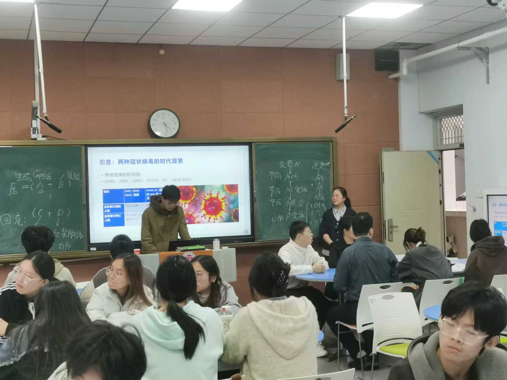 本次公开课聚焦《家畜生理学》第四章“呼吸系统生理”,以“线上预习 + 案例导入 + 小组探究 + 理论串联 + 闭环巩固”的创新范式展开。课前,员工借助学习通平台自主观看教学视频,以小组为单位认领讨论主题,通过查阅教材、文献及拓展资料精心制作汇报PPT,完成前置性学习积累。课堂伊始,席丽老师以大二员工亲身经历的新冠肺炎疫情为切入点,通过播放抗疫十大英雄人物的先进事迹视频,直观呈现社会各界众志成城、共筑防线的精神力量,引发员工情感共鸣与思考。随后,各小组围绕 “SARS非典肺炎与COVID-19新冠肺炎的差异” 展开汇报与讨论,席丽老师针对性点评,从病原学特征、流行特点、致病力强弱、防控难度等维度进行系统总结,让员工深刻认识到呼吸系统结构与功能对生命活动的关键作用,同时强化了“任何组织细胞功能的实现都依赖其正常结构基础”这一贯穿课程的核心理念。