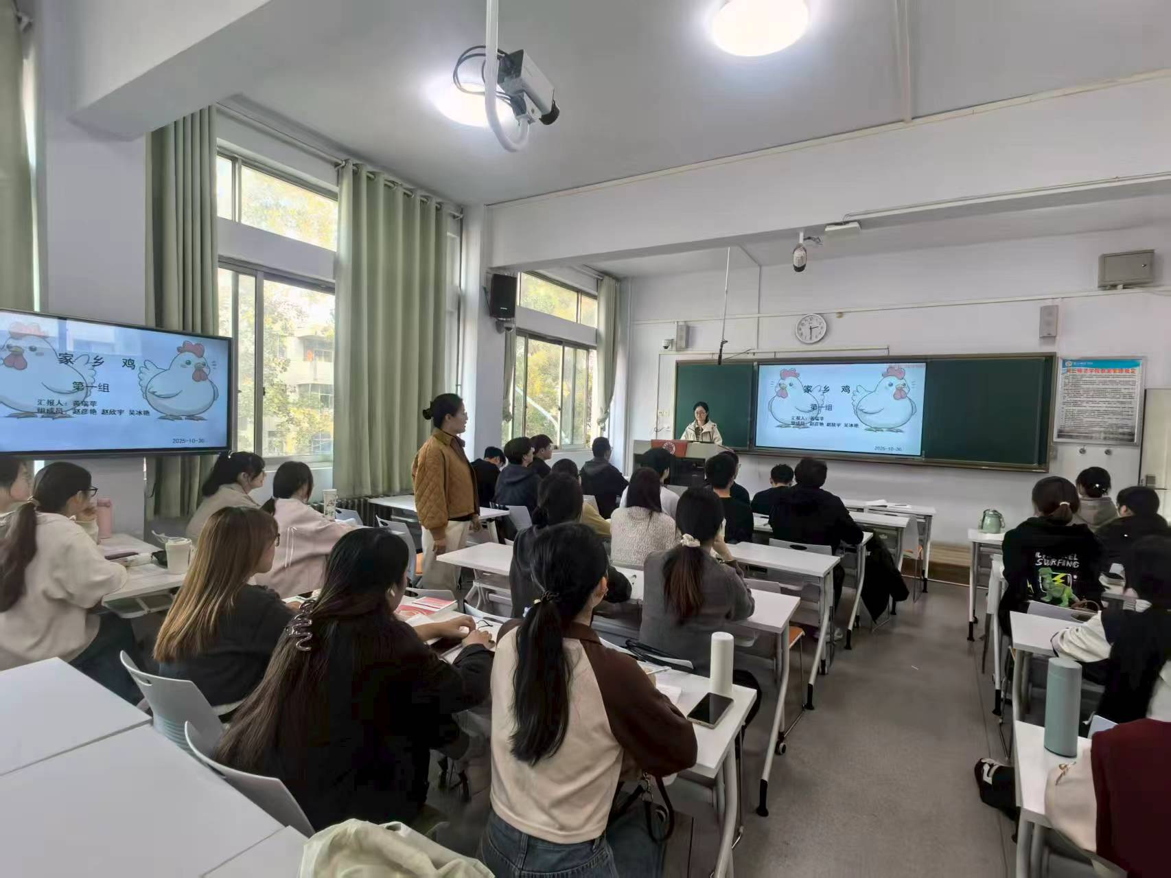 2025年10月30日下午,动物科学专业郝俊芳老师在睢阳校区1号教学楼 412教室,主讲以“结构化+任务驱动”为模式的《家禽生产学》公开课。动物科学专业的席丽、崔艳艳、陈冠华等教师莅临现场观摩指导。